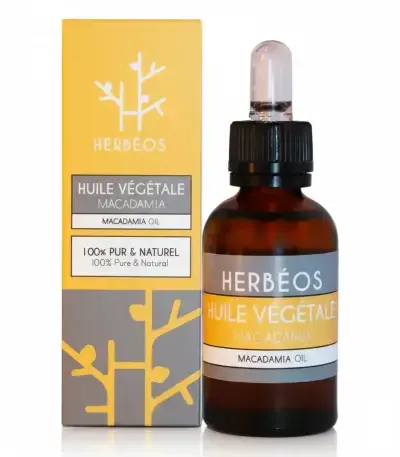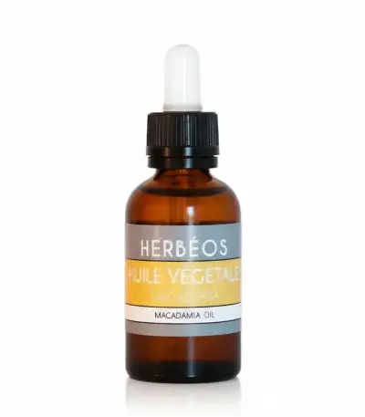 Herbeos 100% pure macadamia vegetable oil in a 30ml bottle provides intense hydration for skin and hair. This lightweight natural skincare formula absorbs quickly without greasy residue, making it perfect as a moisturizer, hair treatment, or massage oil for your daily beauty routine.