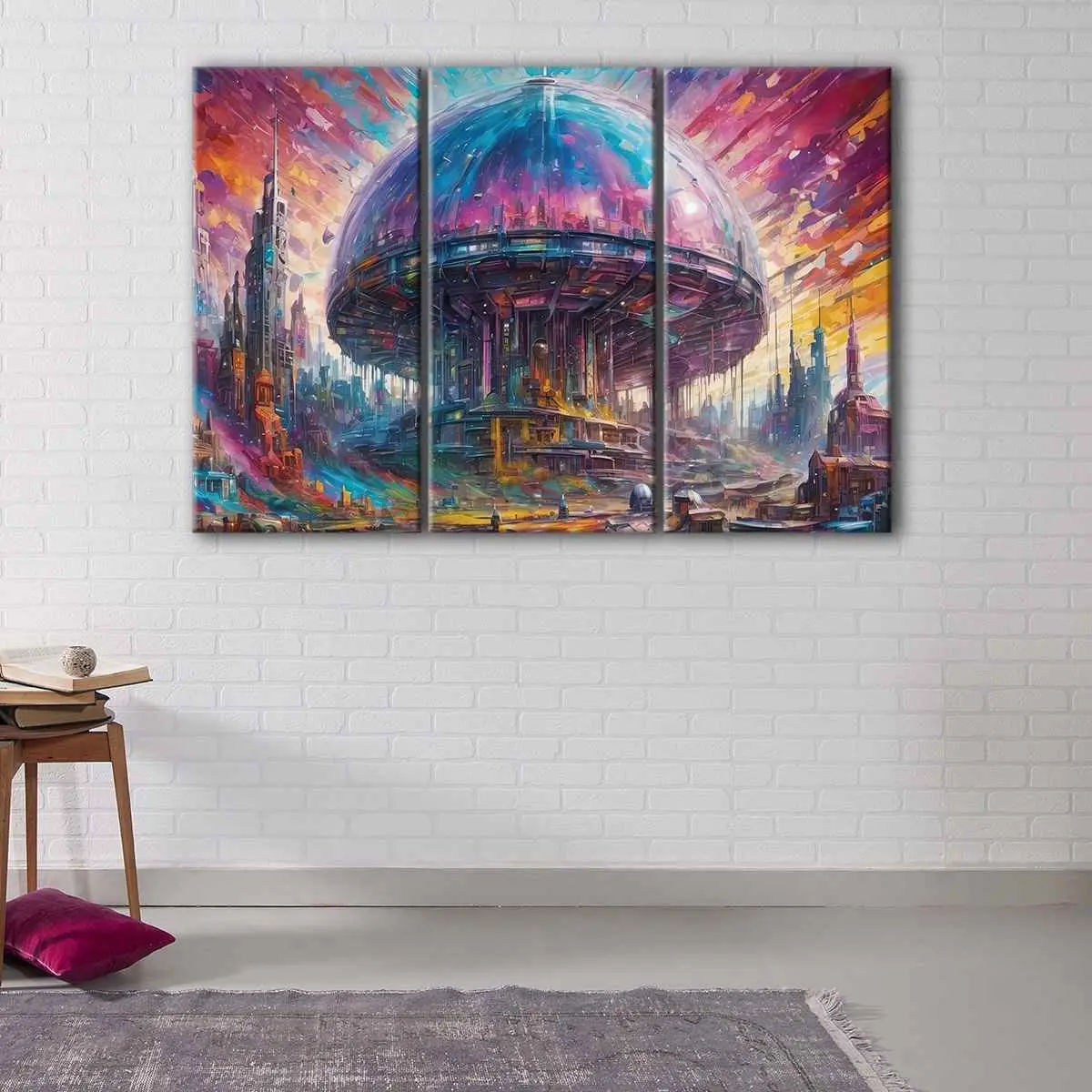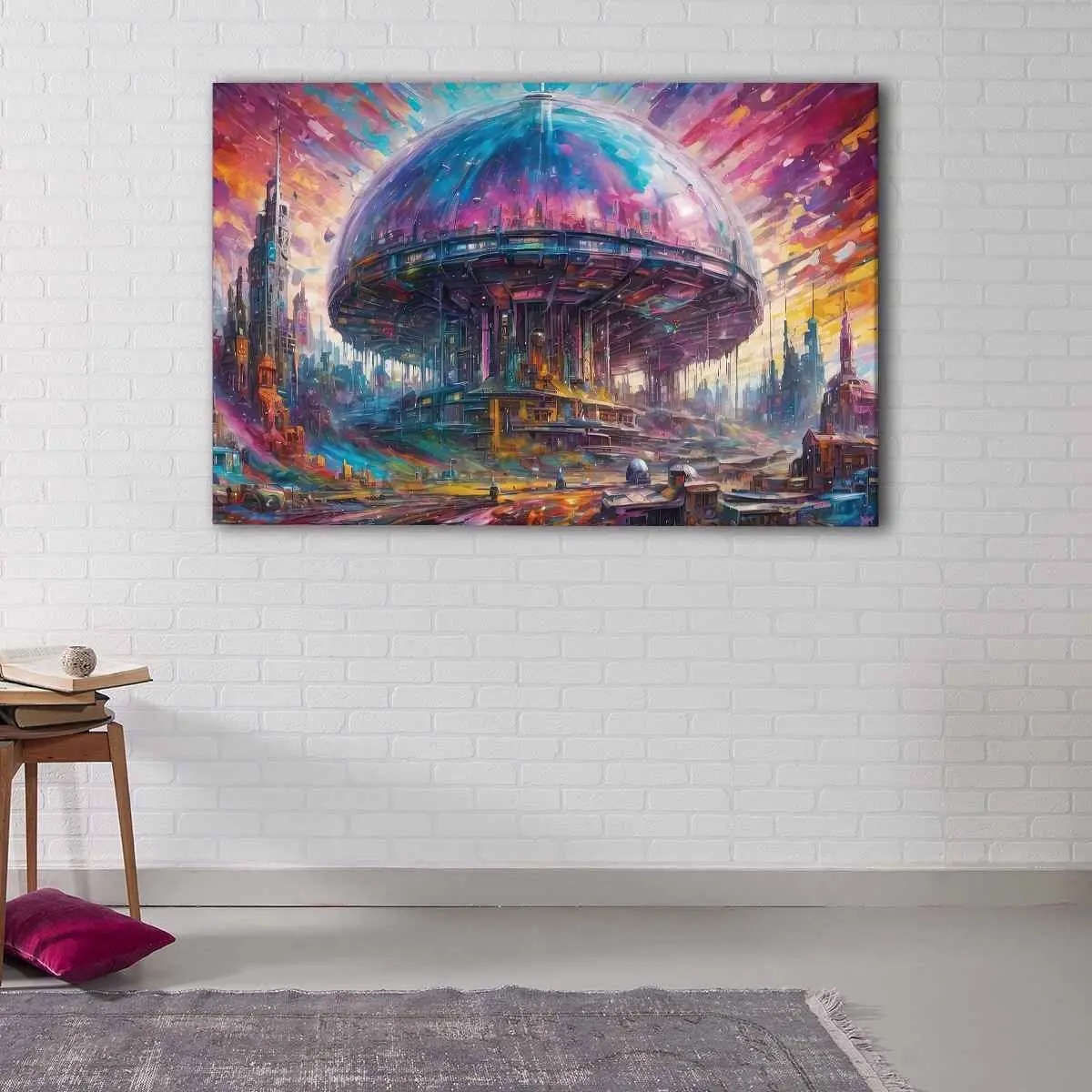 Available for sale at tourathy.com, this Alien City canvas art is a must-have for any art lover. With its stunning cityscape and premium quality, it's sure to be a conversation starter in any room. Treat yourself or gift it to a loved one – the possibilities are endless.