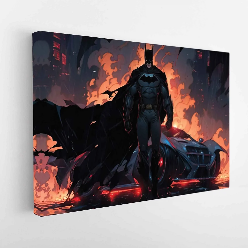 This superhero artwork makes a perfect birthday gift or anniversary gift for action movie lovers. Gifting this stunning Batman in fire canvas wall art will surely spread love in your surroundings. Available for sale at tourathy.com, offering a unique and lasting impression.