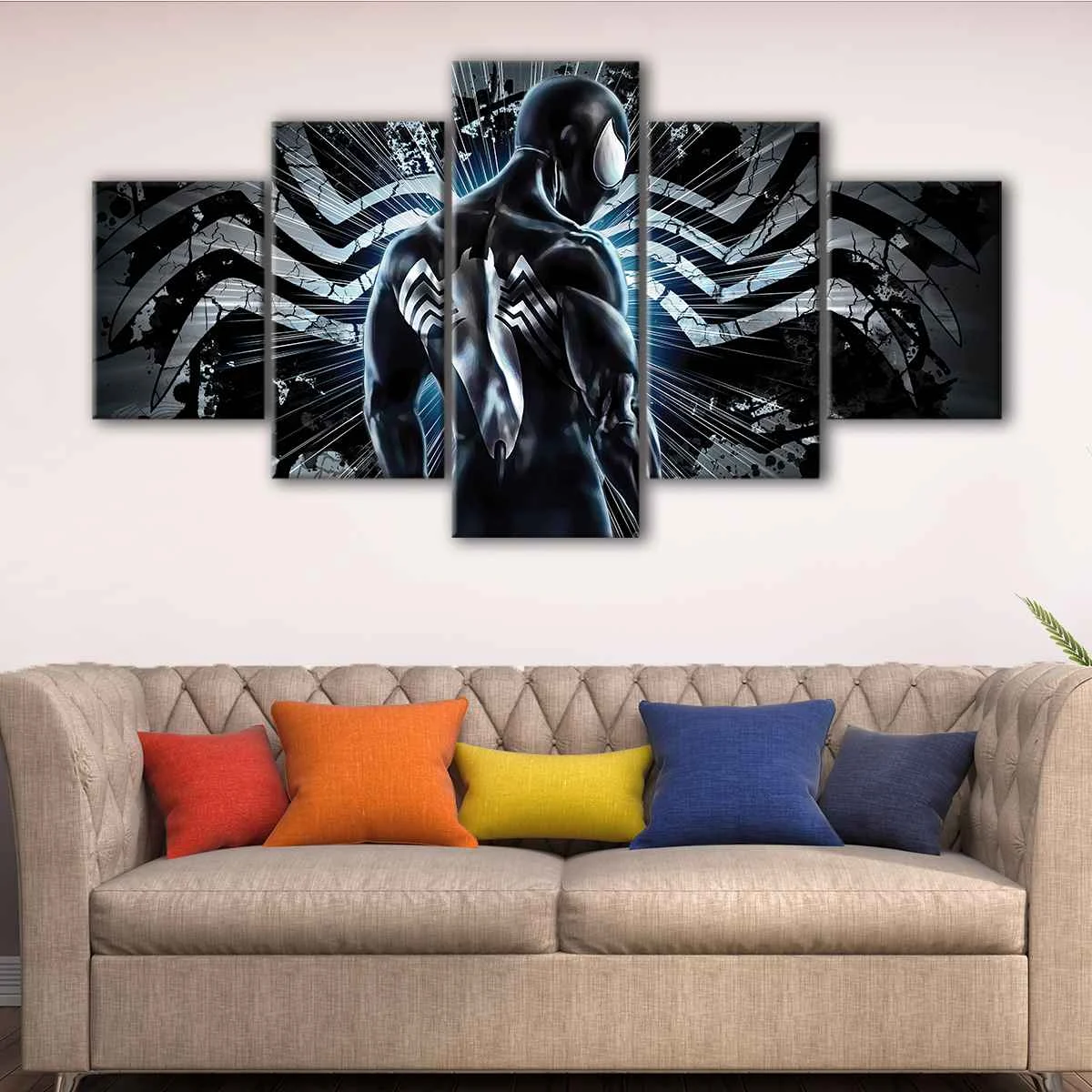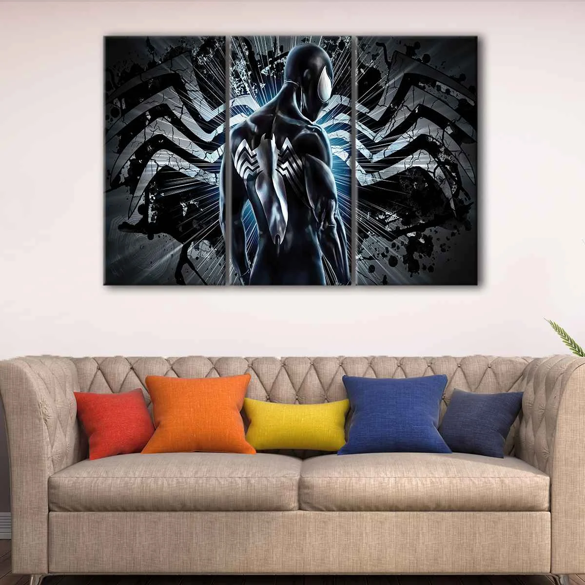 This black spider man wall art is available in 1 panel canvas wrap or 3 panels canvas wrap, perfect for decorating your living room, hallway, kids room or dining room. It comes in a variety of sizes to suit your space, from small to oversized.
