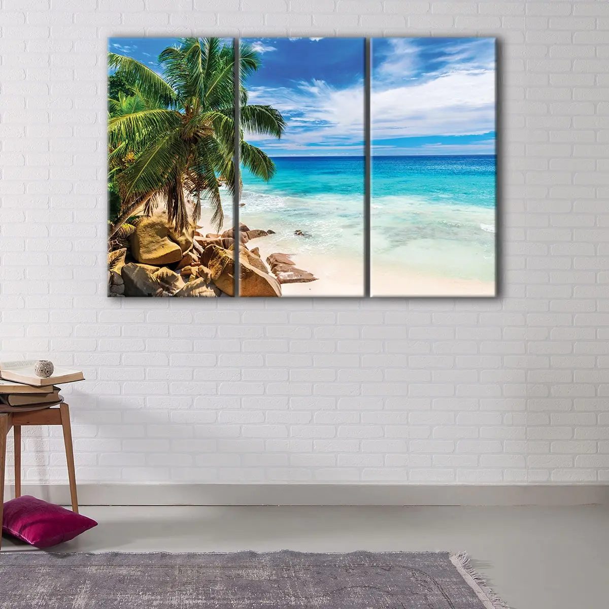 This beach wall art is available in 1 panel, 3 panels, or 5 panels, and in a variety of sizes ranging from small to oversized canvas prints. Whether you're decorating your living room, hallway, kids' room, or dining room, our beach canvas wall art is sure to fit perfectly.