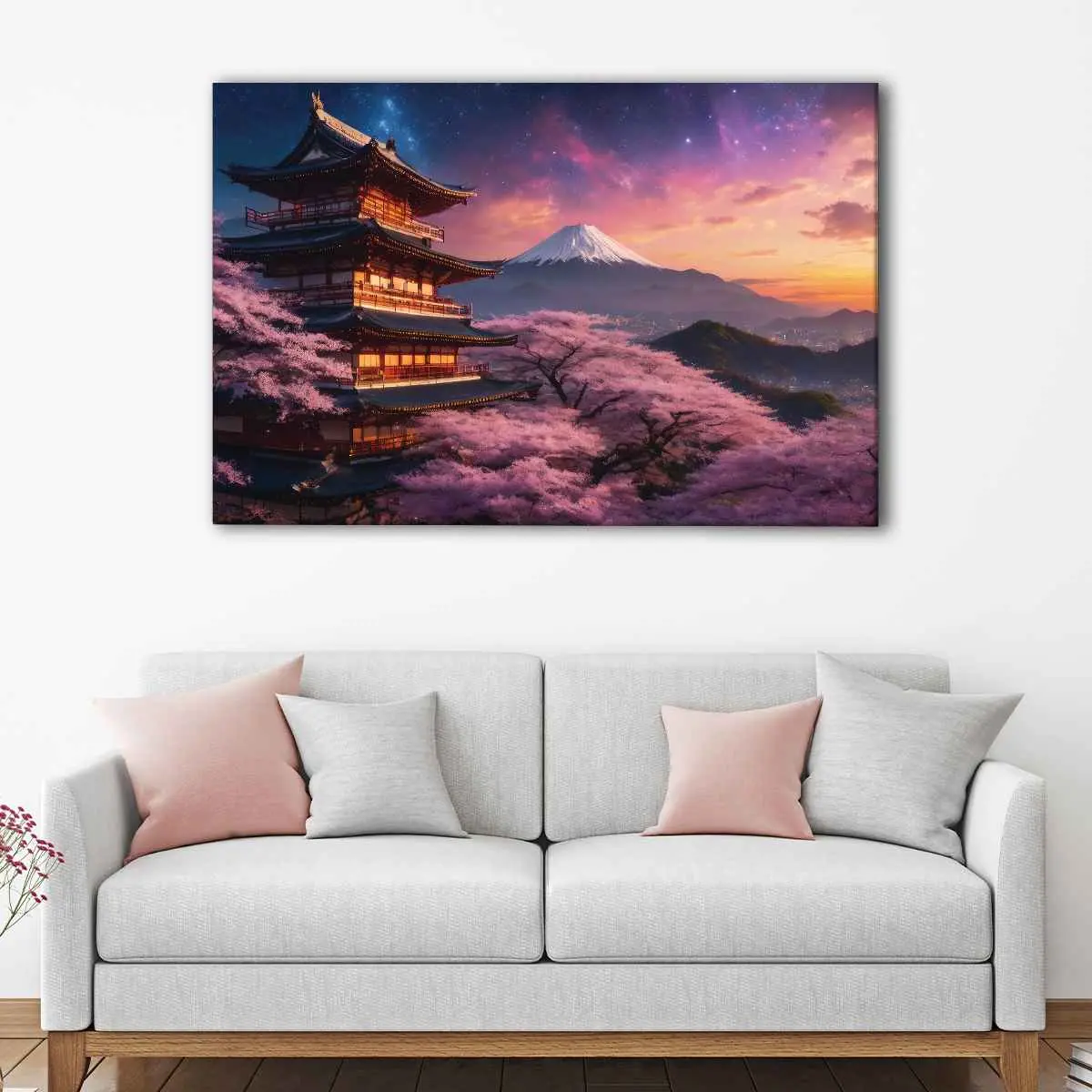 This beautiful Cherry Blossom Temple artwork makes a perfect gift for nature and fantasy lovers. It's ideal for birthdays, anniversaries, or any special occasion. Share the love in your surroundings by presenting this stunning temple canvas wall art to a friend or a family member. Our Cherry Blossom Temple art is available in: