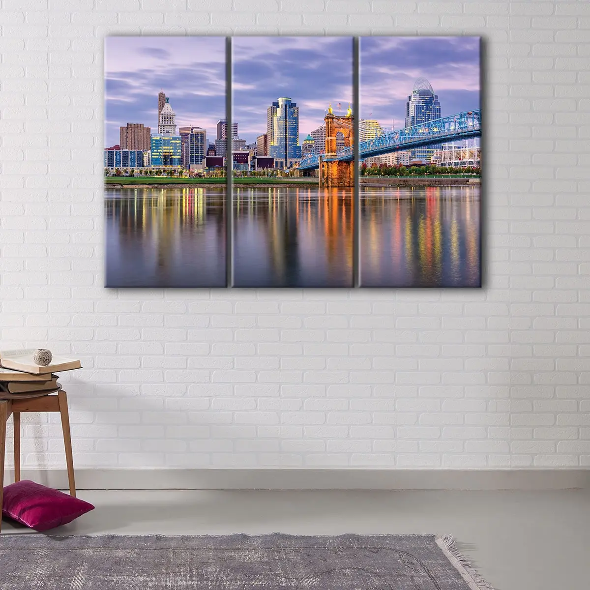 The Cincinnati Skyline canvas art comes ready-to-hang with metal saw-tooth hangers on the back, eliminating the need for additional framing. Our expert craftsman carefully hand-stretches the canvas over 100% natural wood stretcher bars, ensuring a sturdy and long-lasting piece of art. We combine premium poly-cotton canvas with pigment-archival inks to produce high-definition prints with vivid colors that will last for 100+ years.