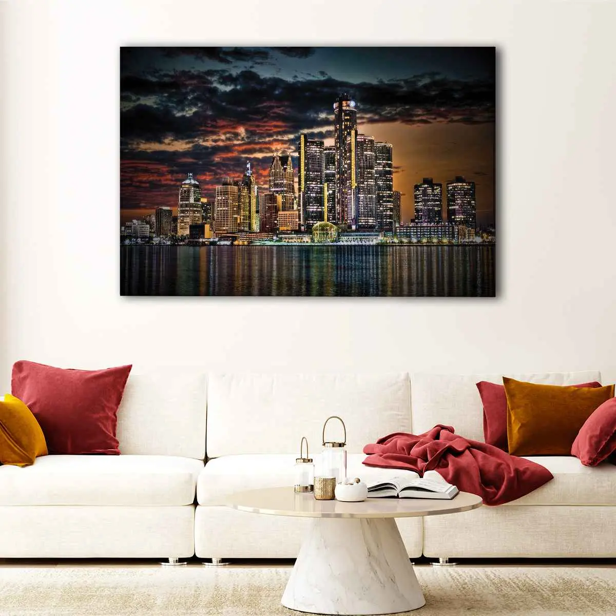 This stunning Detroit skyline canvas art is a work of art that will showcase your love for the city. Carefully hand-stretched over 100% natural wood stretcher bars by our expert craftsman, it's ready to hang on your wall as soon as it arrives.