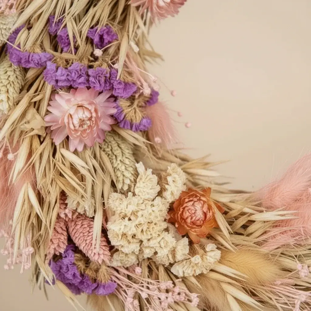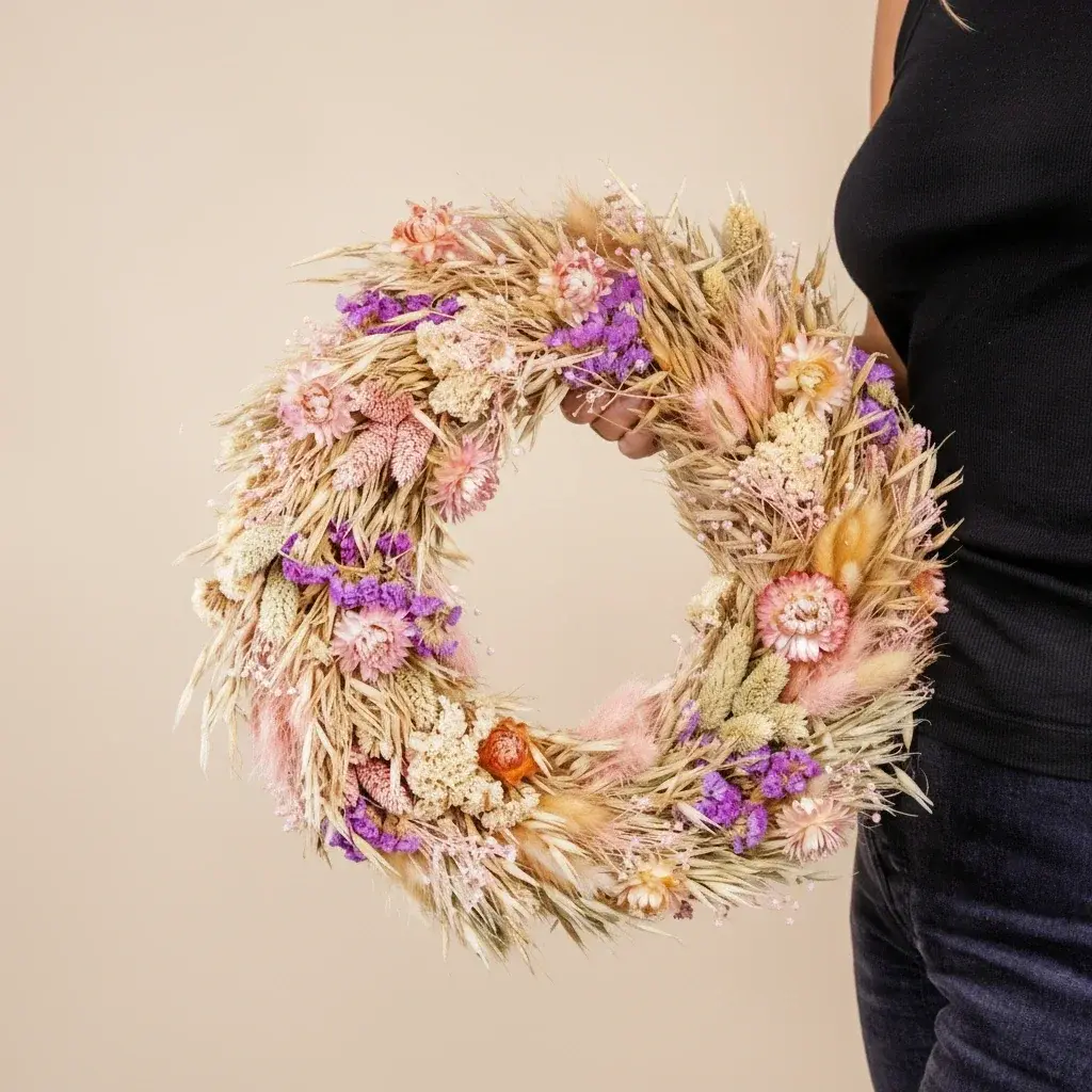 This dried flower wreath is more than just a decoration; it is a statement of style and sustainability. Unlike fresh flowers, it requires no water, never wilts, and maintains its charming appearance year-round. Hang it on your front door to welcome guests, display it in your living room for a cozy touch, or use it as a unique centerpiece for special occasions. Its neutral color palette complements any interior design style from farmhouse to modern minimalist.