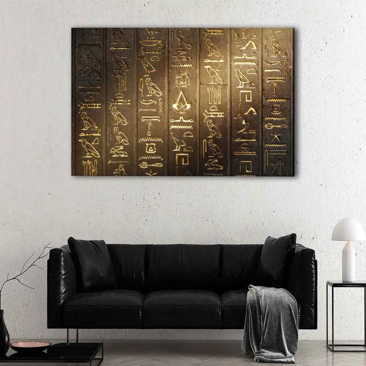 This stunning Egyptian Hieroglyphs wall art is available in one panel, three panels, or multiple pieces to suit your desired decor. Plus, it comes in a wide range of sizes, from compact to oversized canvas prints, allowing you to find the perfect fit for your living room, hallway, kids' room, or dining area.