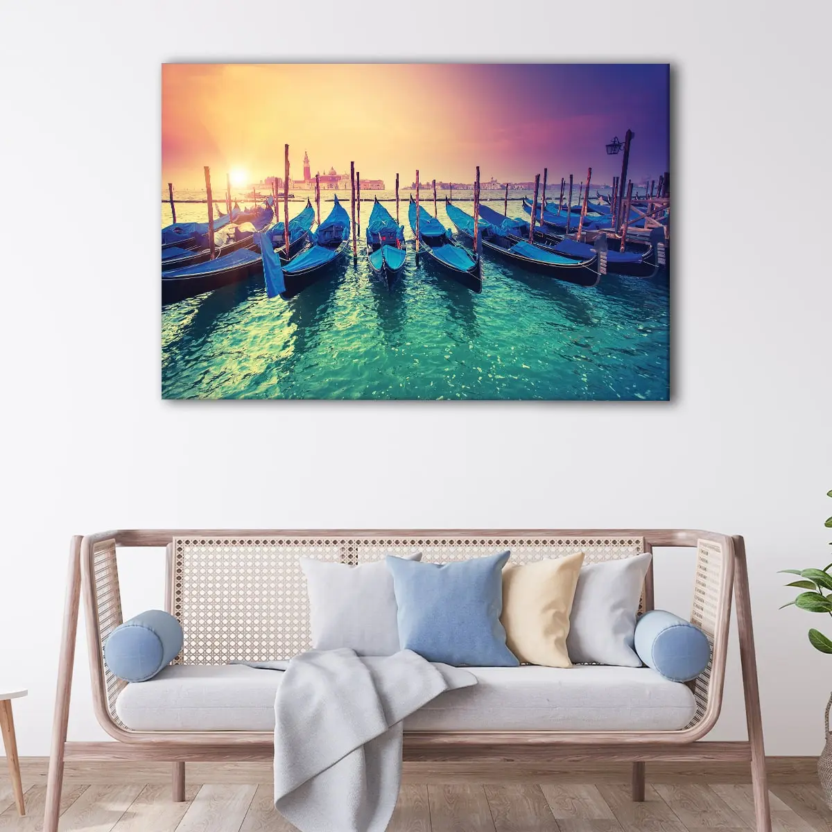 The Venice grand canale sunrise canvas art comes ready-to-hang with metal saw-tooth hangers on the back, eliminating the need for additional framing. Our expert craftsman carefully hand-stretches the canvas over 100% natural wood stretcher bars.