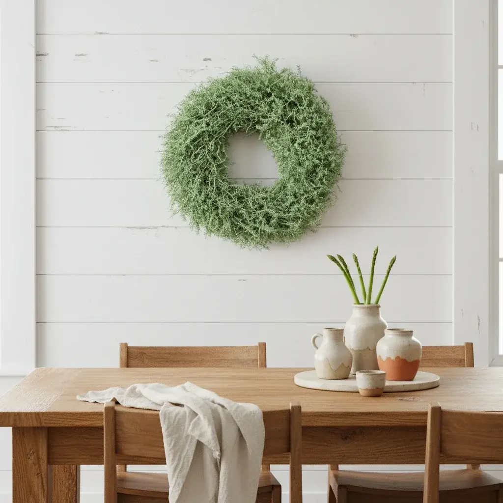This asparagus wreath serves as exceptional seasonal decor, rustic wedding ornamentation, or permanent farmhouse-style wall art. The fresh green tones and natural texture complement any interior design scheme, from modern minimalist to country cottage. Unlike artificial alternatives, our wreaths maintain their organic beauty and subtle fragrance.