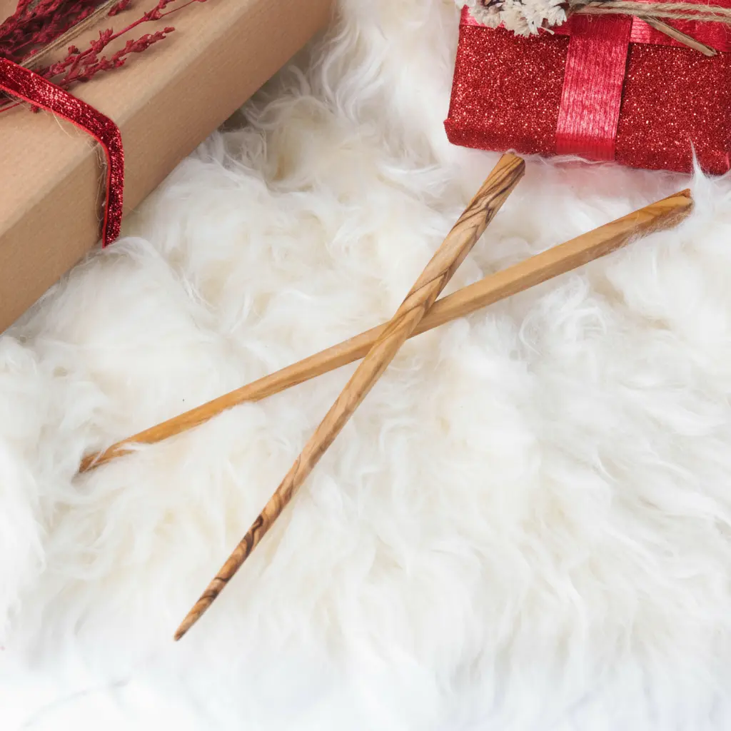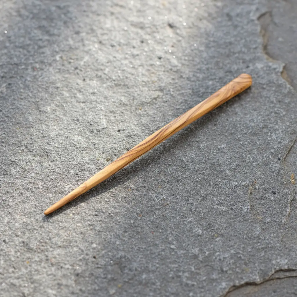This beautiful hairpin is specifically designed for securing elegant buns and updos with grace and reliability. The natural strength of olive wood ensures your hairstyle stays perfectly in place throughout the day while maintaining a lightweight feel. Ideal for those with long hair, it provides a secure yet gentle hold that won't damage or pull your hair. Transform your daily styling routine with this sophisticated and practical hair solution.