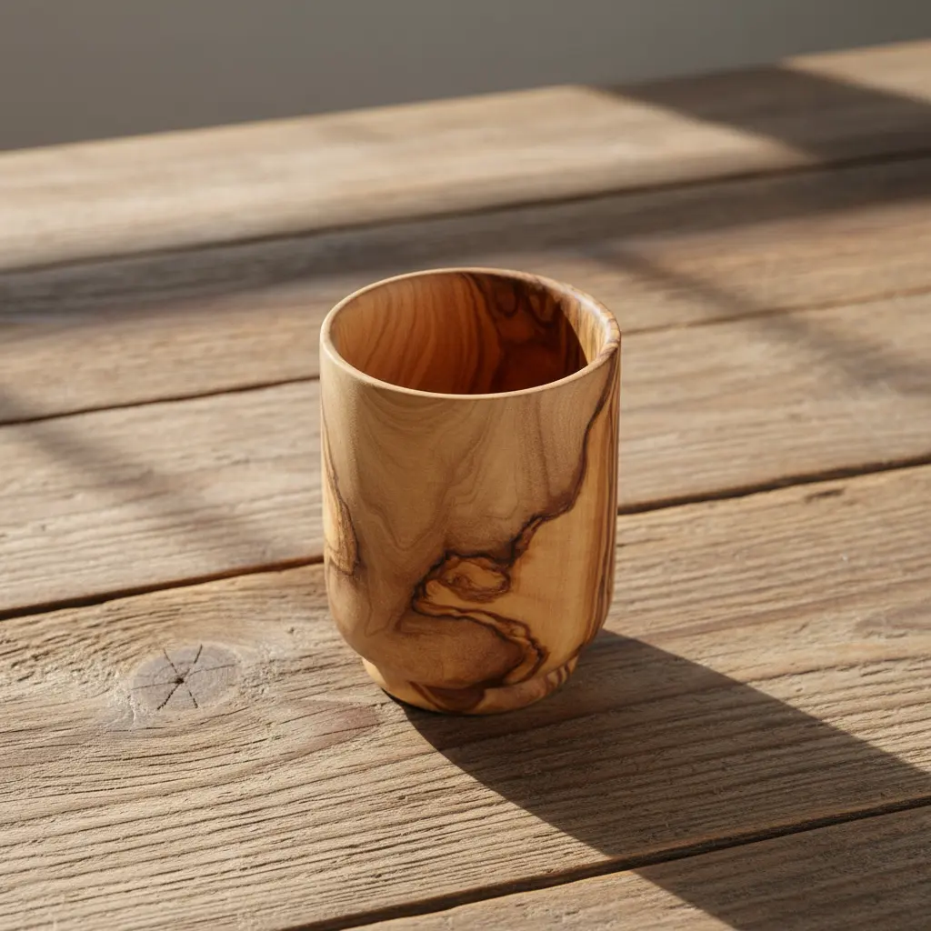This exquisite handmade drinking cup is meticulously carved from solid olive wood, creating a functional work of art for your home. Each piece showcases the unique natural grain patterns of olive wood, ensuring no two cups are exactly alike. The warm, rustic appearance adds organic elegance to any table setting while providing a durable and sustainable drinking vessel perfect for daily use or special occasions.