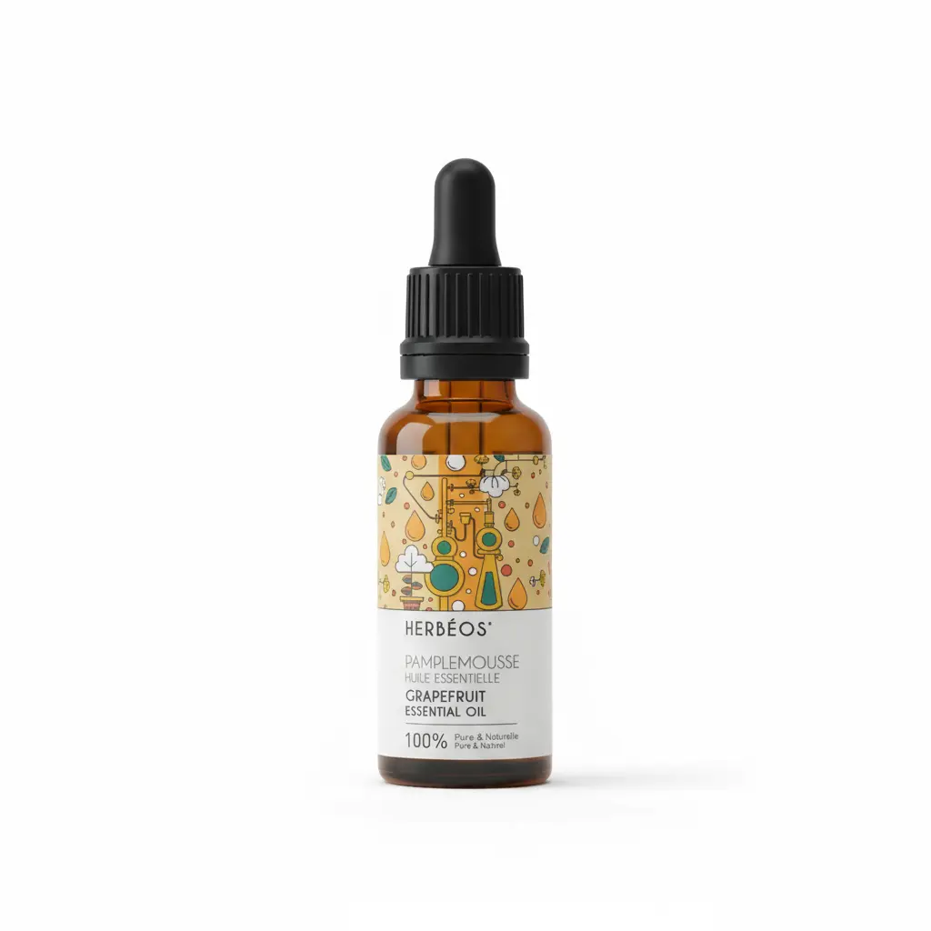 Herbeos Grapefruit Essential Oil offers a 5ml bottle of 100% pure and natural grapefruit zest oil, carefully extracted to preserve its therapeutic properties. This essential oil is perfect for aromatherapy enthusiasts seeking authentic, high-quality botanical extracts. The oil maintains the natural essence of grapefruit, providing a genuine aromatic experience that's free from synthetic additives or dilutions.