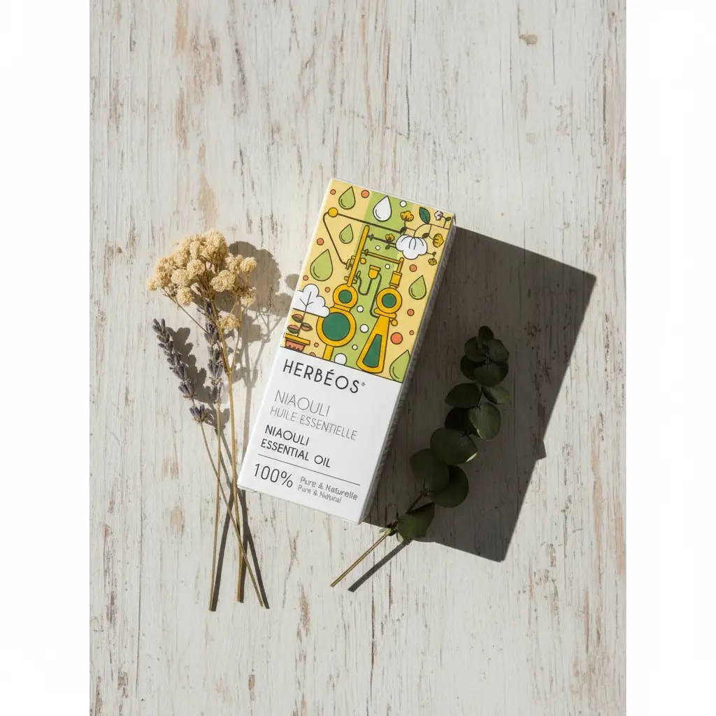 Herbeos presents 100% pure Niaouli essential oil in a convenient 5ml bottle. This natural essential oil is carefully sourced and bottled to maintain its therapeutic properties. It features a distinctive fresh, camphoraceous aroma that is both invigorating and purifying. The oil is derived from the leaves of the Niaouli tree, known for its powerful natural benefits and versatile applications in holistic wellness practices.