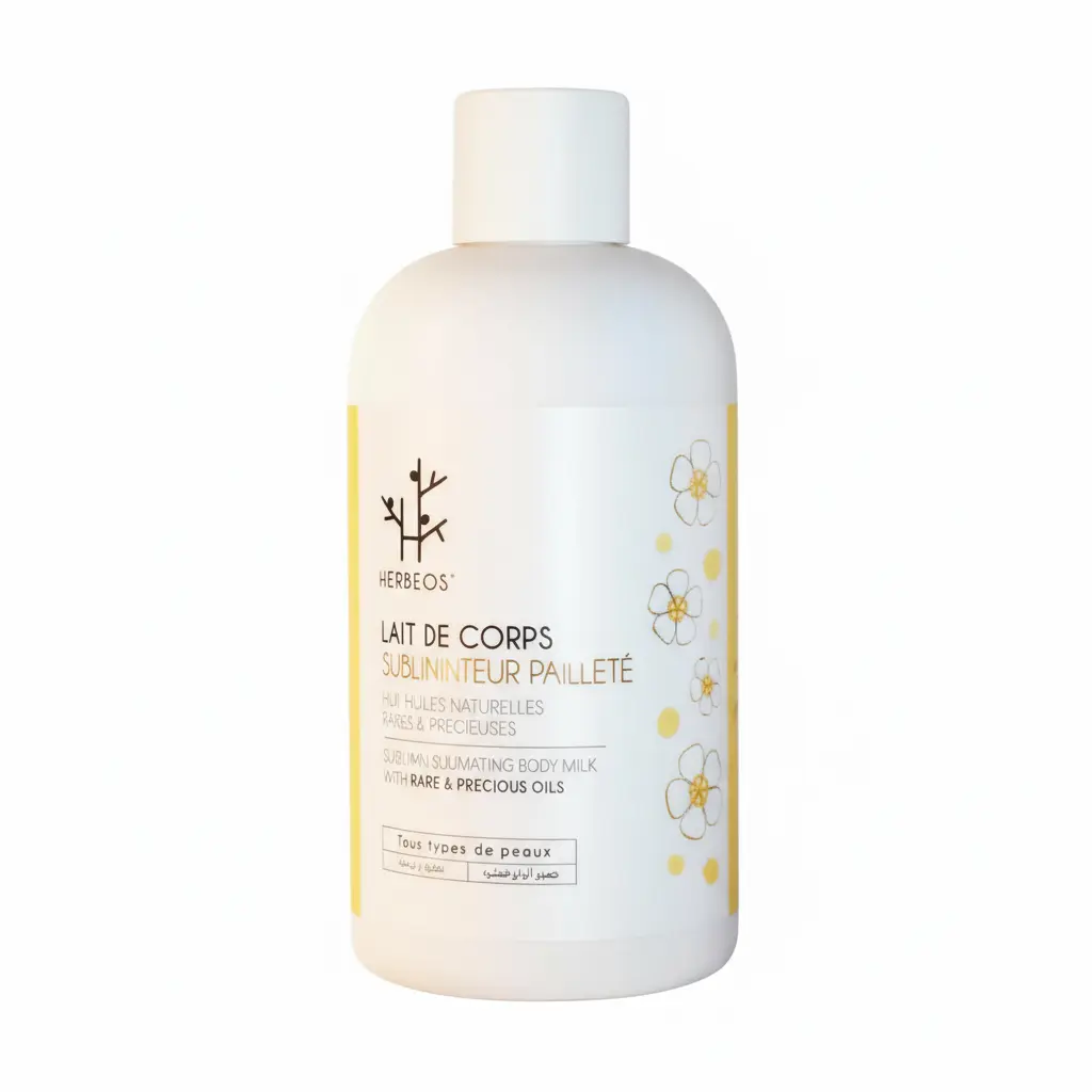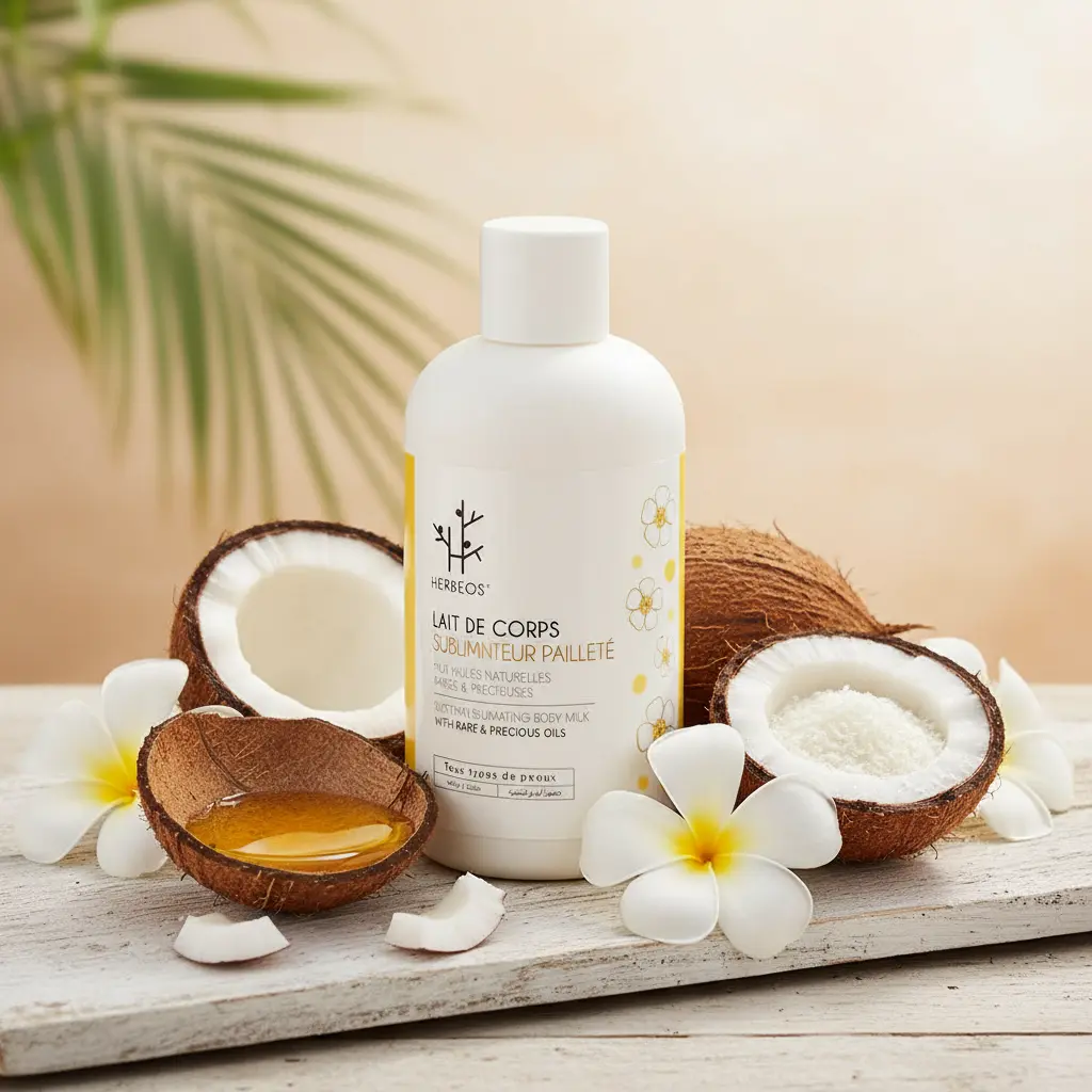 Herbeos Pearly Body Milk with Monoi 250ml For sale. This body care essential from Herbeos masterfully combines rare Monoi oil with precious natural oils to provide deep nourishment for all skin types. The luxurious formula is designed to transform your daily skincare routine into an indulgent tropical experience, offering both hydration and a subtle radiant glow.