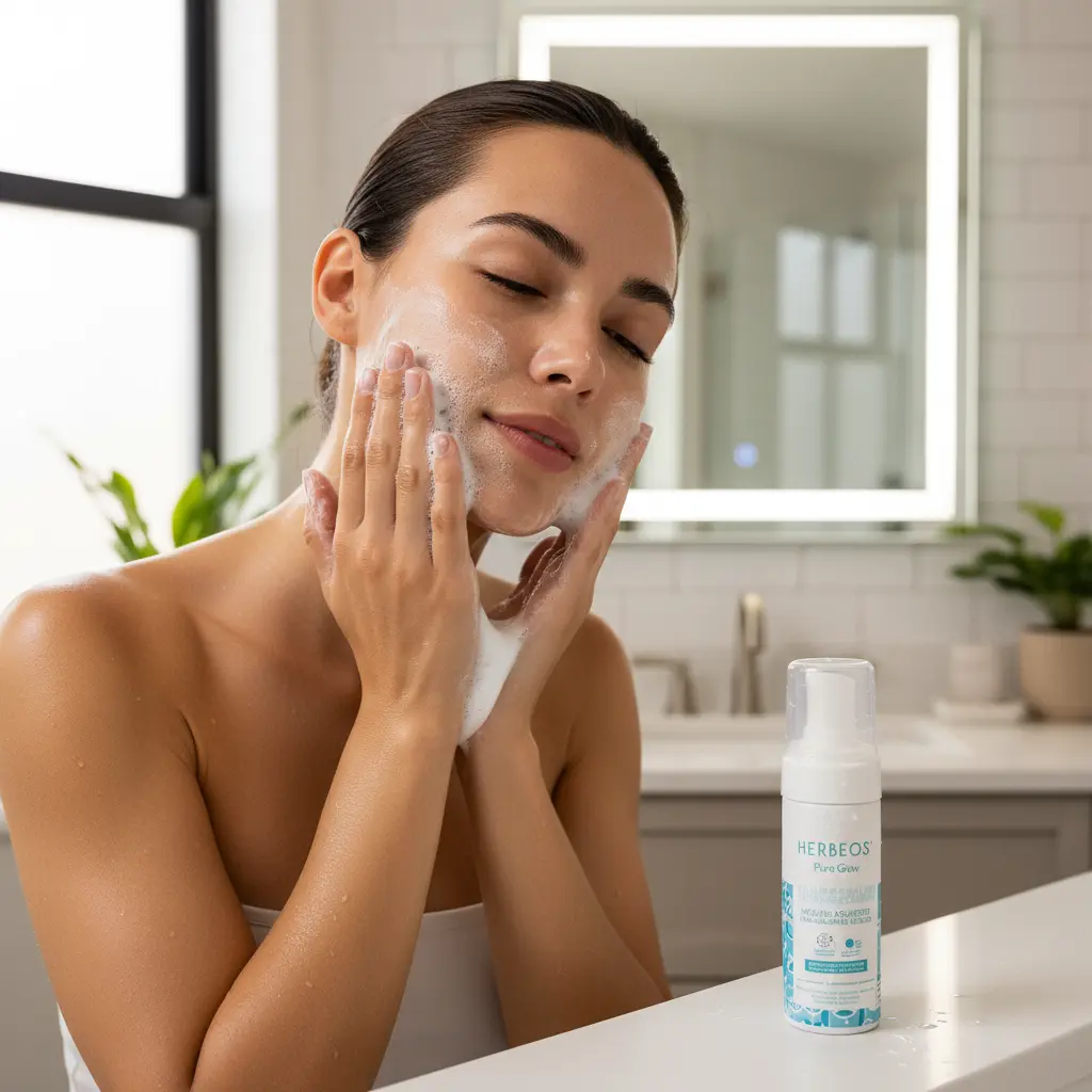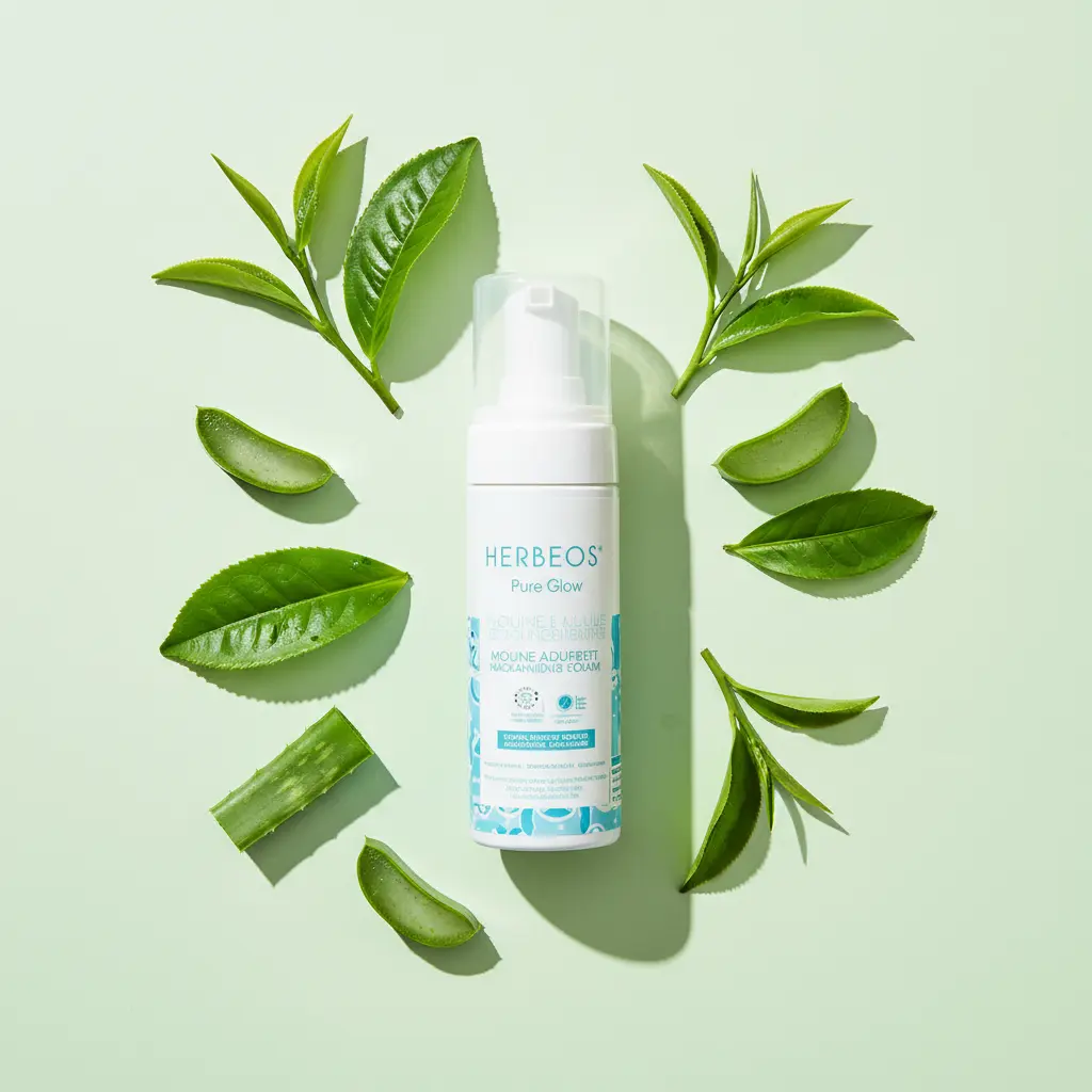 Herbeos Pure Glow Cleansing Foam is a specialized facial cleanser designed to combat blemishes while promoting radiant skin. This 150ml formula is part of the Anti-Blemish range, specifically developed to address skin impurities and maintain clarity. The gentle foaming action effectively removes dirt, excess oil, and environmental pollutants without stripping the skin's natural moisture barrier. Perfect for daily use, this cleanser helps prevent breakouts while preparing your skin for the rest of your skincare routine.