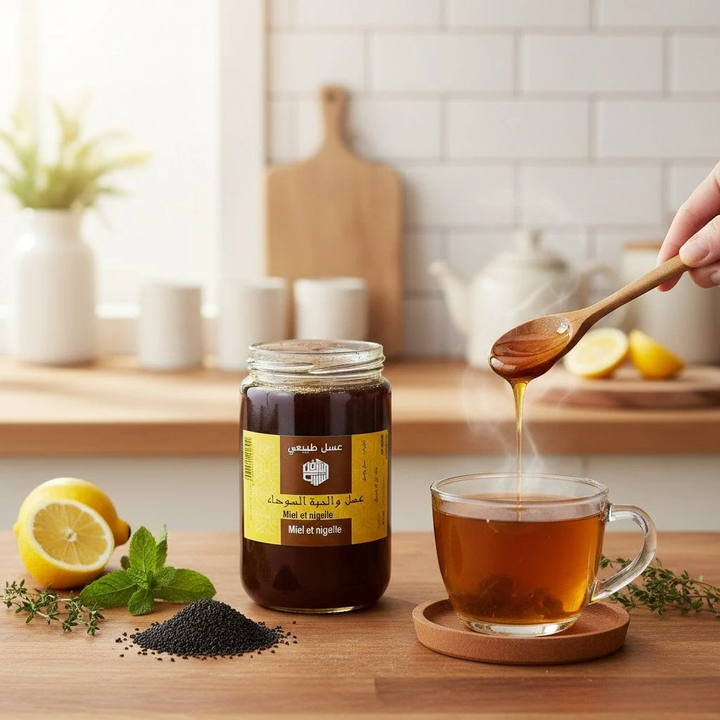 To enjoy, simply stir the jar gently to distribute the black seeds. Use it as you would any high-quality honey. Store in a cool, dry place away from direct sunlight. This product is presented by Charab Chifa, bringing you a taste of traditional blends. Please note that while this honey is a natural food product, it is intended for culinary use.