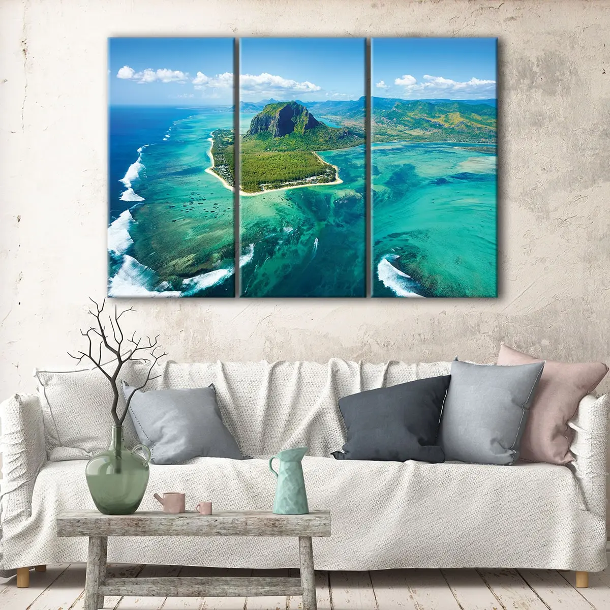 This stunning tropical island wall art is designed to transport you to a paradisiacal state of mind. Imagine waking up to the sound of gentle waves and the warmth of a tropical breeze every day. Our Island Aerial View canvas art is meticulously crafted to bring the serenity of the island to your cozy abode.