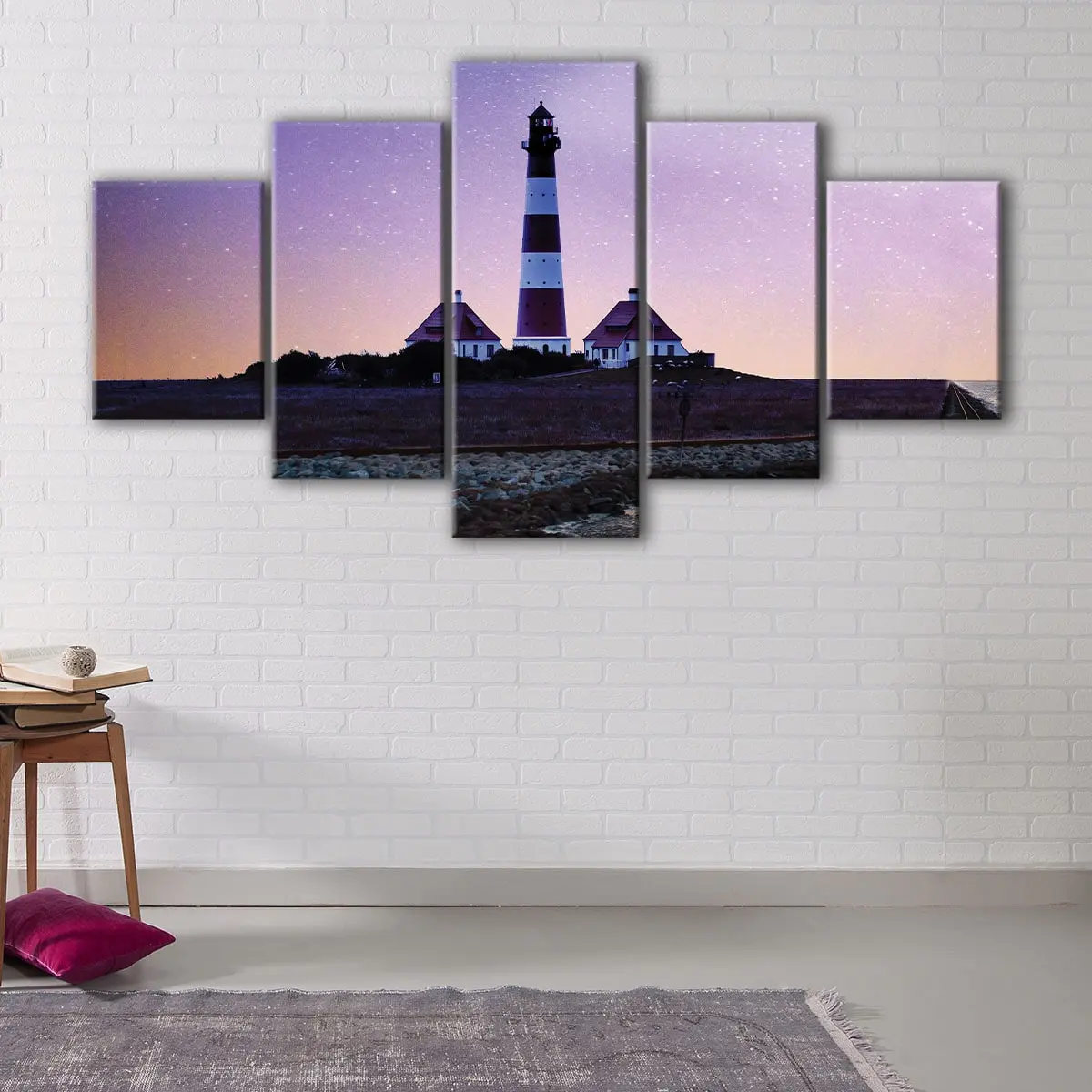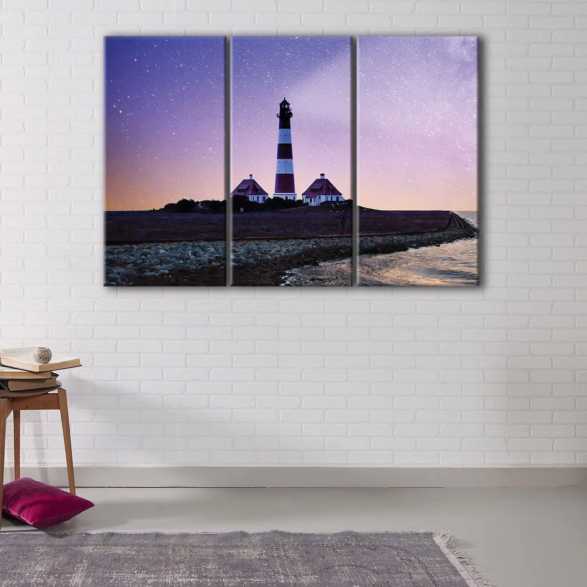 Experience the mesmerizing beauty of the lighthouse and stars with our premium canvas art. Designed to last, this stunning piece is carefully hand-stretched over 100% natural wood stretcher bars by our expert craftsmen. We use only the finest materials, combining premium poly-cotton canvas with pigment-archival inks to deliver high-definition prints with vivid, long-lasting colors that will remain for 100+ years.