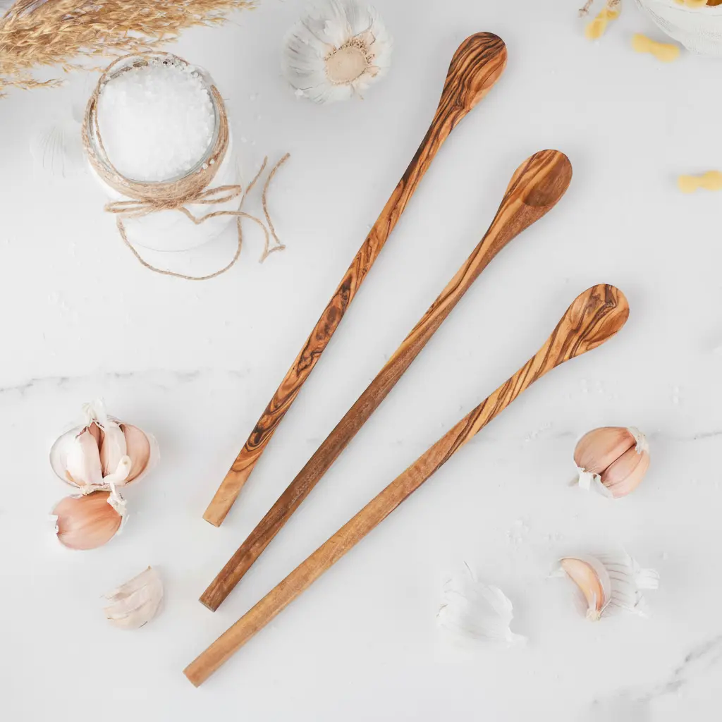 Each spoon is meticulously handcrafted from premium olive wood, known for its durability and beautiful natural grain patterns. The smooth finish ensures it won't scratch or damage your delicate glassware, while the natural wood properties help preserve the authentic flavors of your beverages without transferring any metallic or artificial tastes.