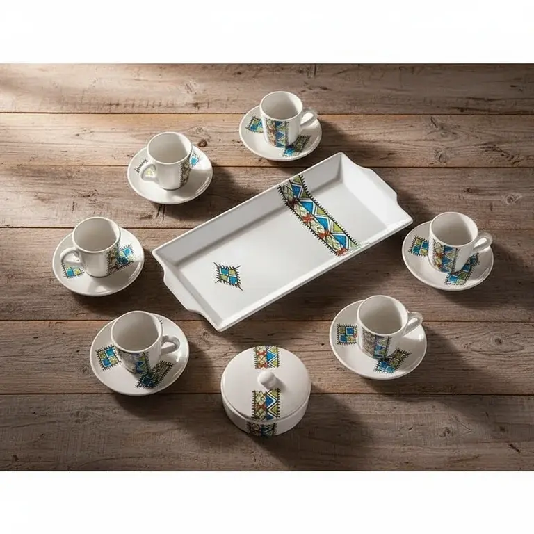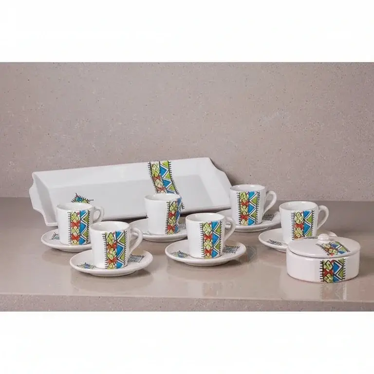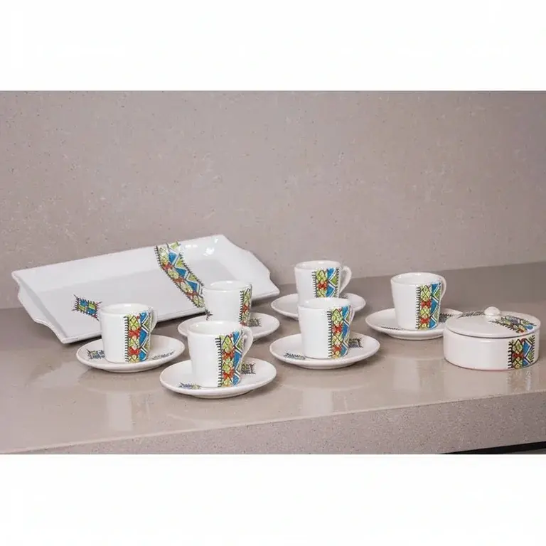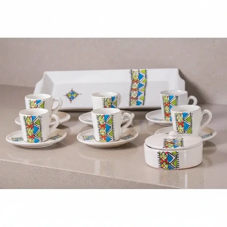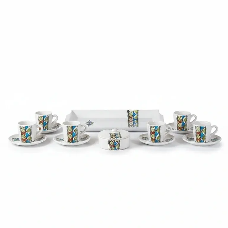 Transform your daily coffee break into a cherished tradition with the Margoum 15-Piece Coffee Set. This complete service, designed for 6 people, brings authentic style and warm hospitality to your home. Crafted from beautiful pottery, each piece reflects a timeless, handcrafted aesthetic that turns every gathering into a special occasion.
