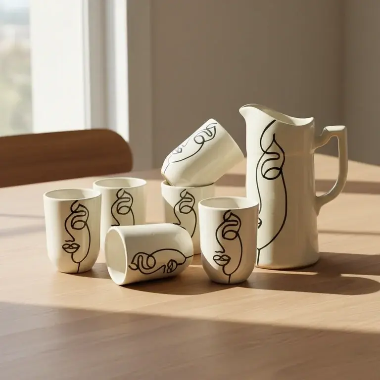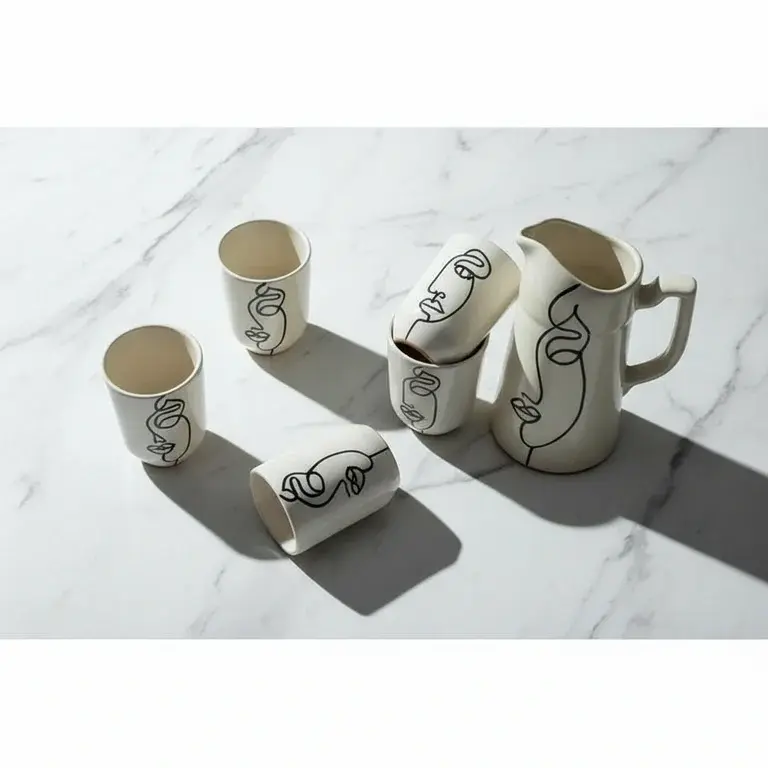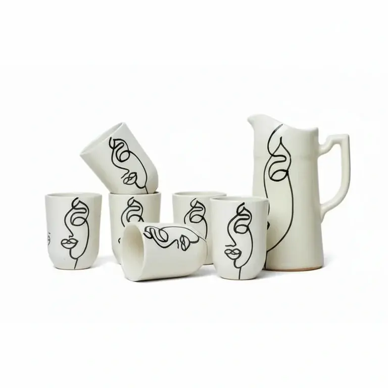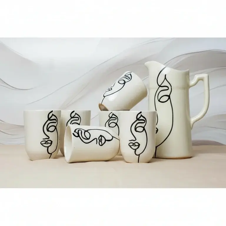 Each piece in the Margoum collection showcases traditional pottery techniques and authentic ceramic construction. The set features the distinctive Margoum design style that reflects cultural heritage through its form and finish. Made from high-quality porcelain and ceramic materials, these pieces offer durability while maintaining the aesthetic appeal of traditional pottery. The complete set coordinates perfectly to create a cohesive table setting that enhances your coffee experience with genuine artisan quality.