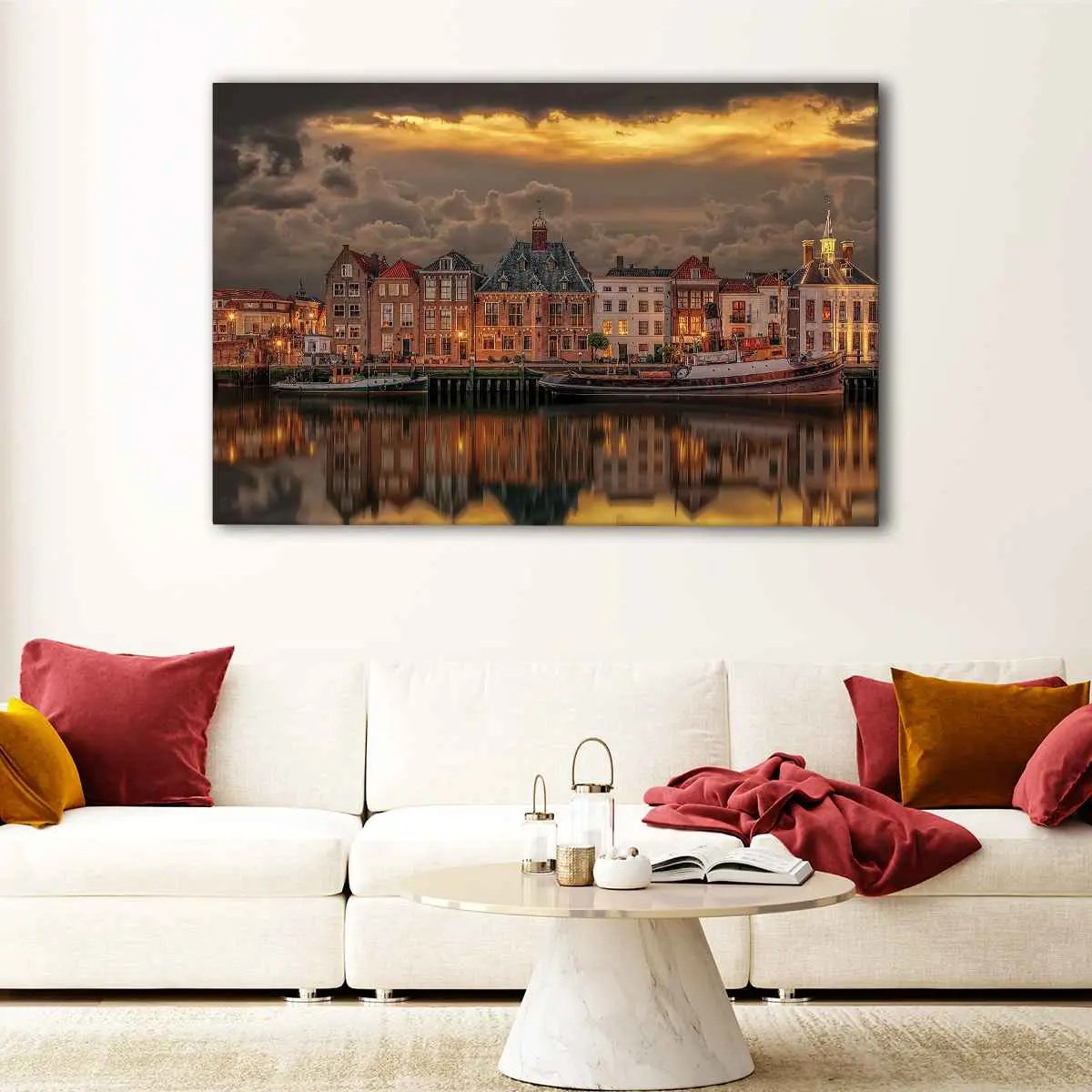 This breathtaking Old Port of Maassluis wall decor is available in various sizes, from small to oversized canvas prints, ensuring that it will fit perfectly in your living room, hallway, kitchen, or dining room. Its beauty and charm will make it a focal point in any space.