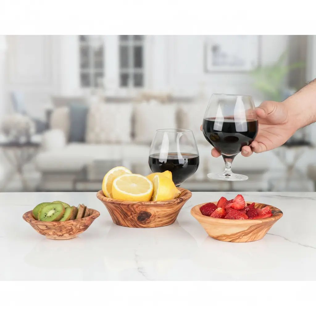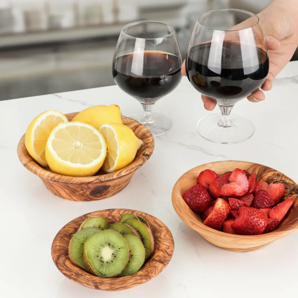 These olive wood bowls serve multiple purposes in your home - from elegant dining presentations to stylish decorative displays. The natural wood grain patterns create visual interest that enhances any table setting or kitchen counter. Whether used for serving guests or as part of your home decor collection, these artisan bowls add warmth and sophistication to any space. Their timeless design makes them suitable for both everyday use and special occasions.