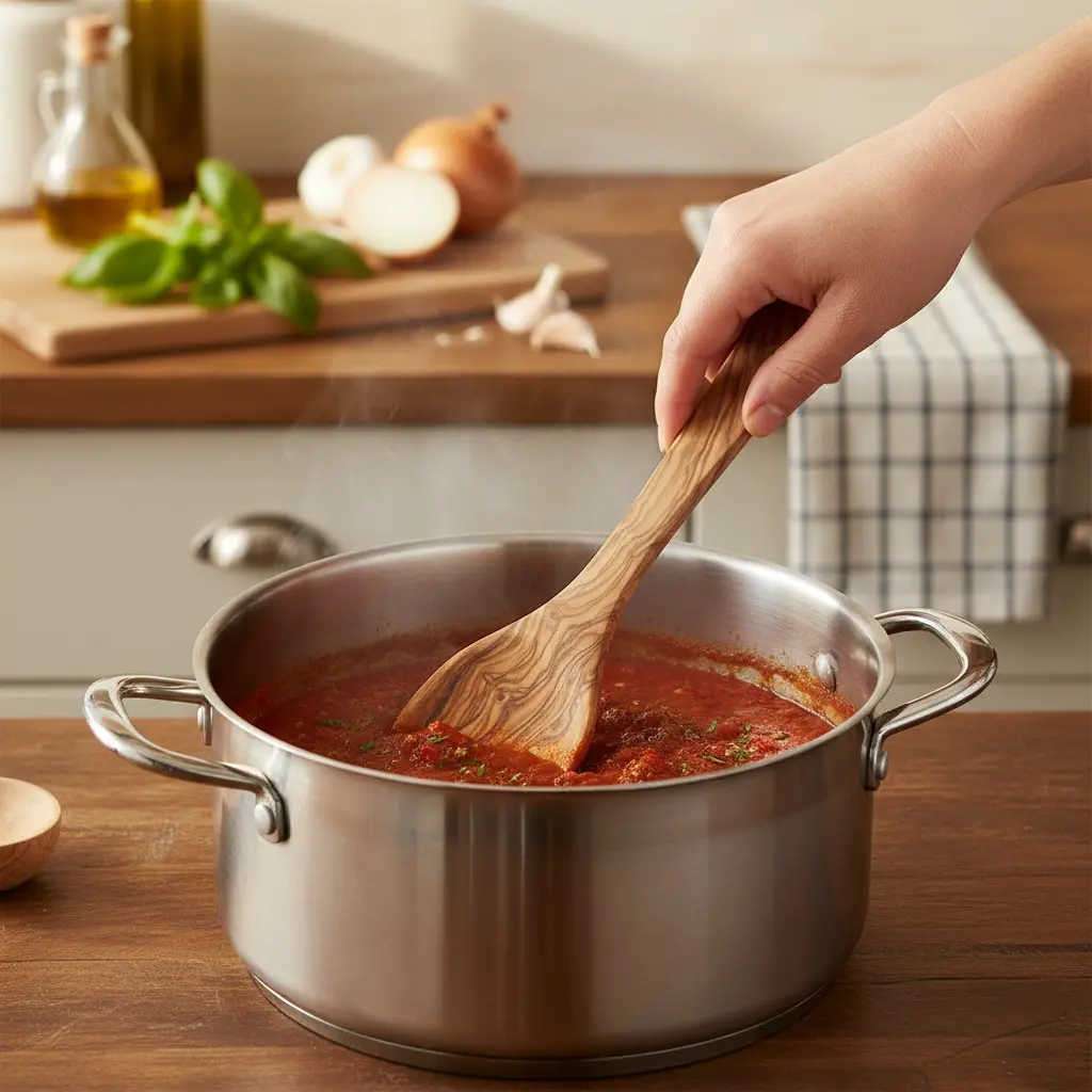 Crafted from high-quality olive wood, this spoon is not only functional but also naturally beautiful with its rich wood grain. Olive wood is known for its durability and natural antimicrobial properties, making it an excellent choice for kitchen utensils. This handmade cooking spoon is a must-have for any home chef who values both form and function in their kitchen tools.