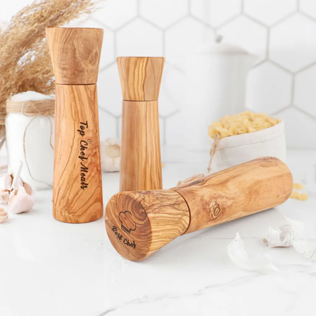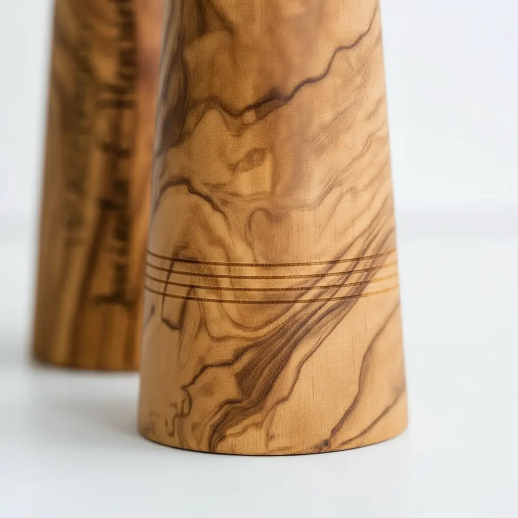 This beautiful Salt & Pepper Grinder Set from Artisraw showcases the natural elegance of handcrafted olive wood. Each piece is carefully selected and shaped to highlight the unique grain patterns and warm tones of this premium material. The set features a reliable ceramic grinding mechanism that ensures consistent results and perfect seasoning control for all your culinary creations.