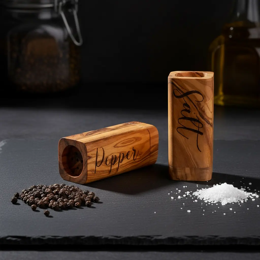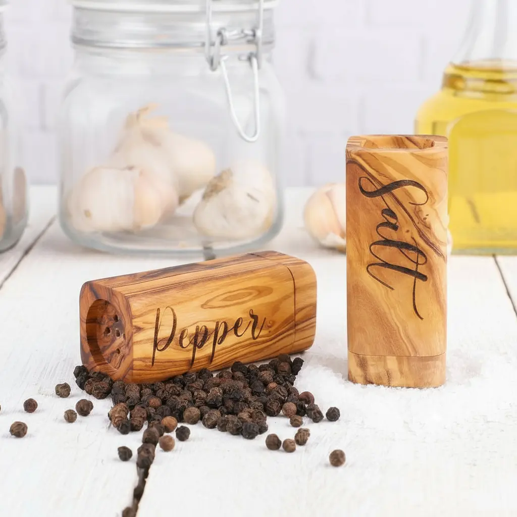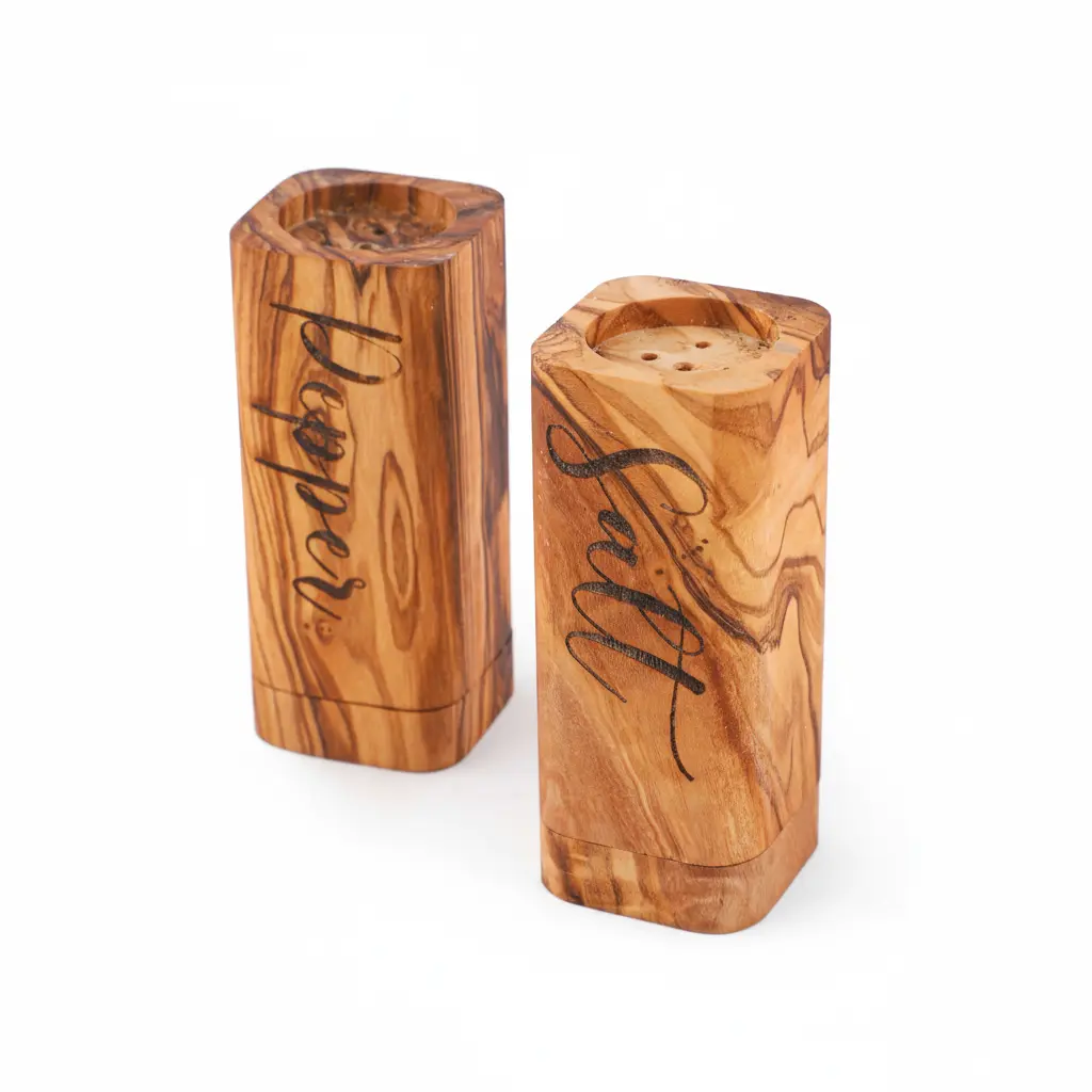 Built for daily use and lasting durability, these salt and pepper shakers feature a secure lid design that prevents spills while allowing for perfect seasoning control. The thoughtful construction ensures easy filling and consistent dispensing, making meal preparation more enjoyable. The natural properties of olive wood make these shakers resistant to moisture and odors, maintaining the purity of your spices. Their sturdy build withstands regular use while maintaining their elegant appearance over time.
