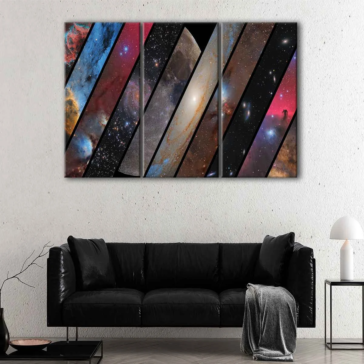 This parallel universes wall art is available in various configurations to suit your style: 1 panel, 3 panels, or 5 panels. You can choose from a range of sizes, from small to over-sized canvas print, to perfectly complement your living room, hallway, kids room, or office space.