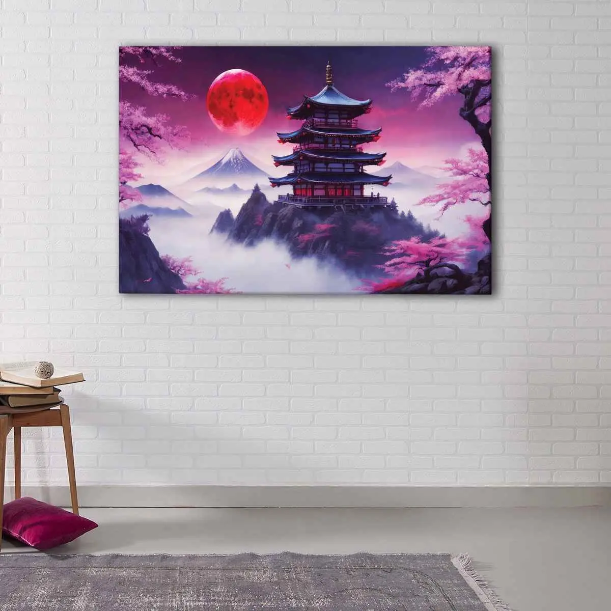 Elevate any space with this enchanting temple artwork, making it an ideal gift for birthdays, anniversaries, nature lovers, or anyone captivated by fantasy. Share the beauty of the Red Moon Temple canvas art with your loved ones and spread love throughout your surroundings.