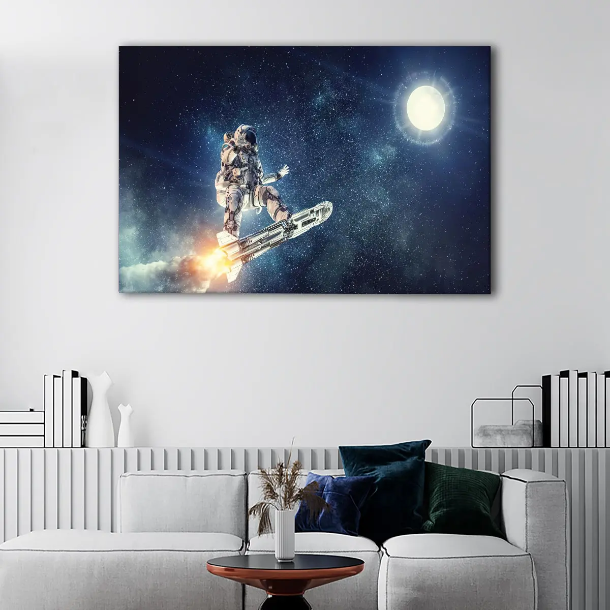 Our stunning Astronaut canvas art comes ready-to-hang with metal saw-tooth hangers on the back, and no additional framing is required. The canvas is carefully hand-stretched over 100% natural wood stretcher bars by our expert craftsman, ensuring a high-quality finish. We combine premium poly-cotton canvas with pigment-archival inks to offer you high-definition prints with really vivid colors that last for 100+ years.