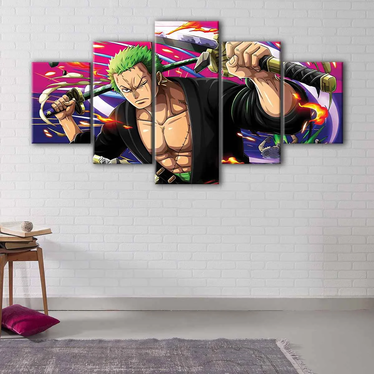 This Roronoa Zoro Attack wall art is suitable for any room in your home, available in a range of sizes from compact to oversized, making it a perfect fit for your living room, hallway, kids room, or dining room.