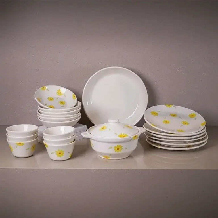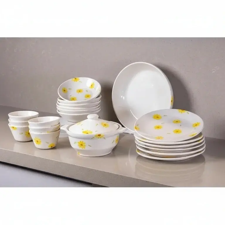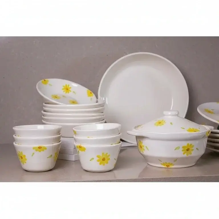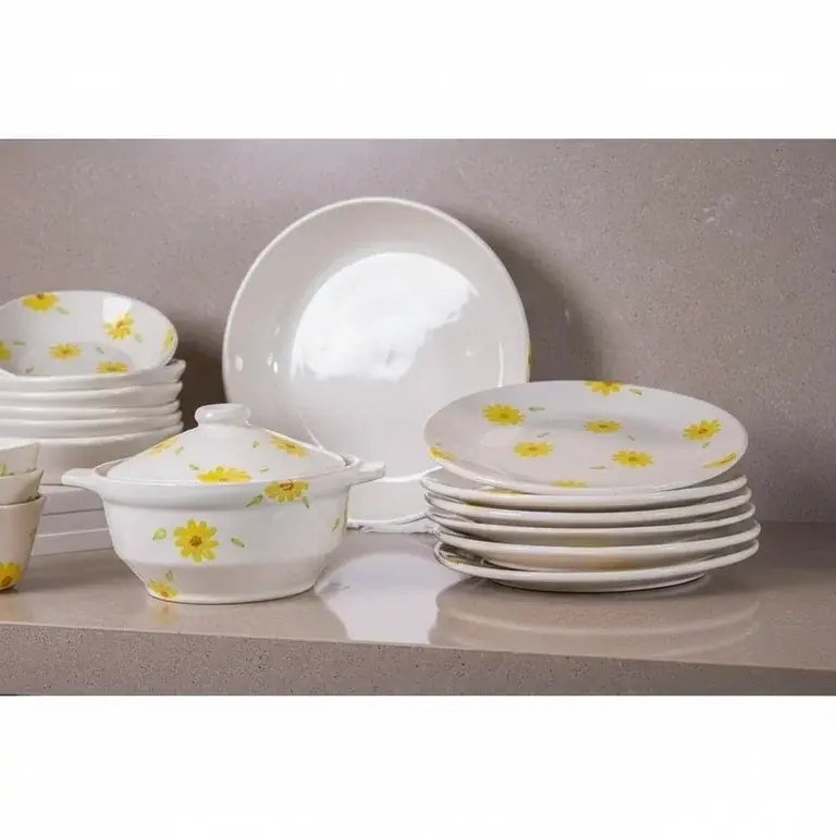 This comprehensive 21-piece set provides all the essential serveware and dinnerware you need in one beautiful package. You will receive a full suite of plates, bowls, cups, and saucers, all adorned with the same cheerful sunflower motif. The set is perfectly sized for serving four to six people, making it ideal for both daily family meals and entertaining guests without the hassle of mixing and matching.