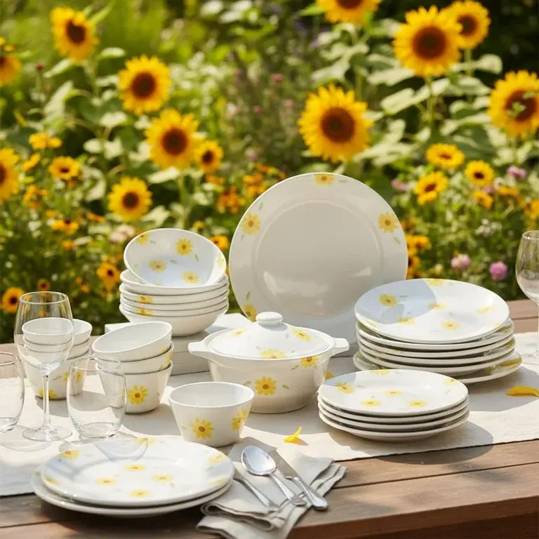 Transform your dining experience with the radiant charm of our 21-piece Sunflower dinnerware set. This complete collection brings the warmth and joy of a sunny garden directly to your table, creating an inviting atmosphere for family dinners and festive gatherings alike. Each piece is meticulously crafted to offer both stunning visual appeal and everyday practicality.