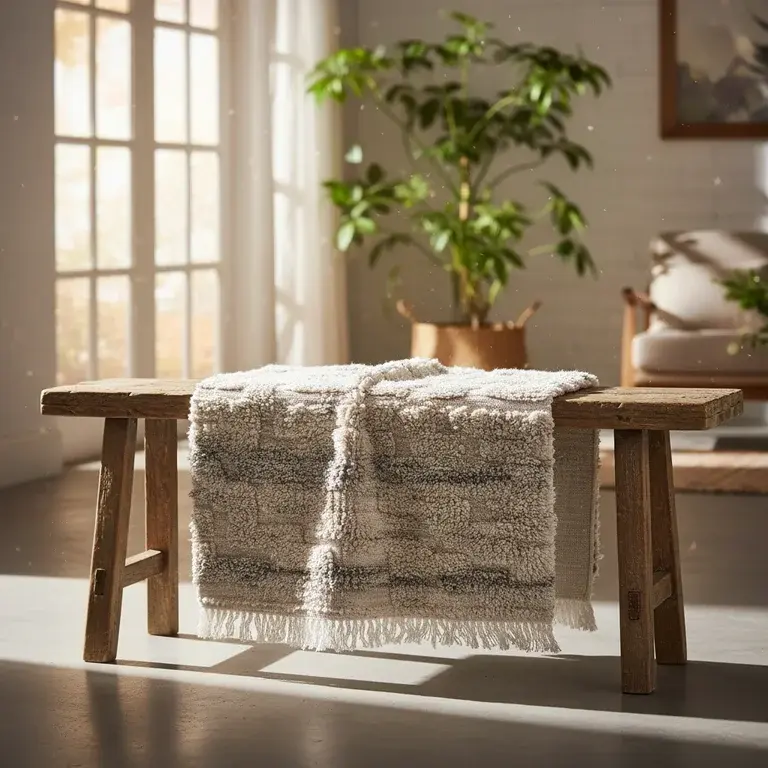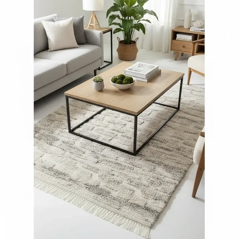 Designed to enhance any interior space, this Berber rug brings warmth and texture to living rooms, bedrooms, dining areas, or entryways. The neutral color palette and geometric patterns complement various decor styles from modern minimalist to rustic and bohemian. Use it as a focal point in your room or as a foundation for your furniture arrangement. The rug's substantial presence helps define spaces in open-plan areas while adding comfort underfoot. Its versatile design makes it suitable for both contemporary and traditional home settings.