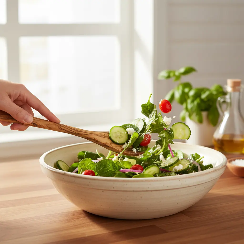 Designed specifically for serving salads and gourmet dishes, this spoon combines practicality with aesthetic appeal. The smooth, polished surface is comfortable to hold and easy to clean. Olive wood is known for its strength and resistance to odors and stains, ensuring your spoon remains hygienic and beautiful for years to come. Its versatile size makes it ideal for tossing, serving, and enjoying a variety of foods, from fresh garden salads to hearty pasta dishes.