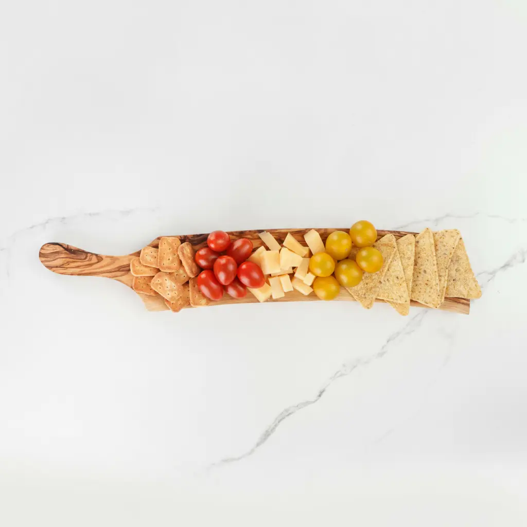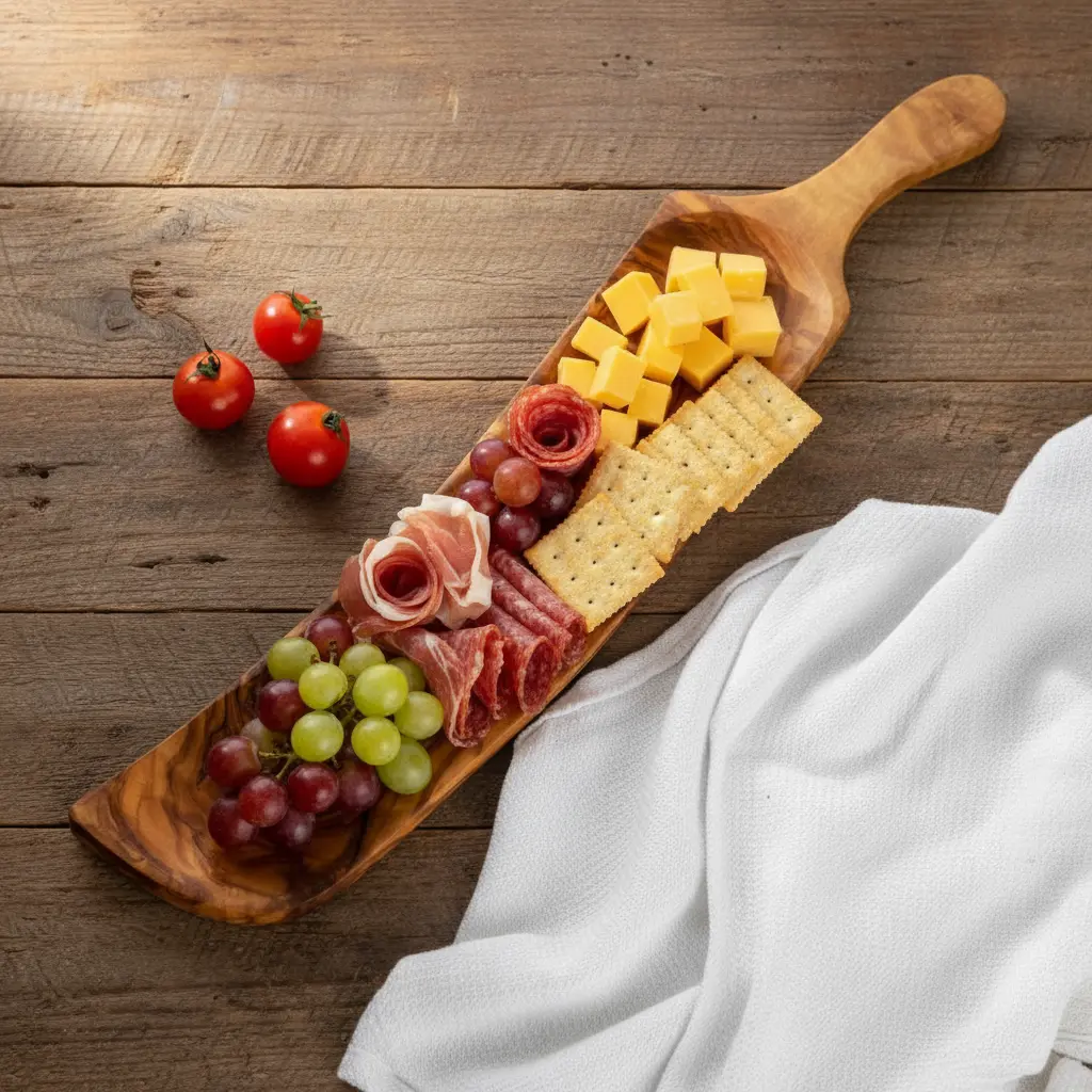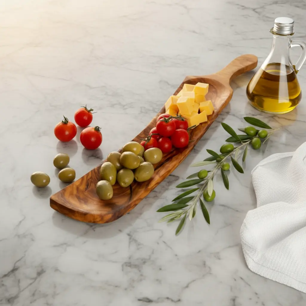 Beyond its primary use as a charcuterie board, this versatile serving piece functions beautifully as a cutting board for fruits and vegetables, a cheese serving board, or an elegant tray for appetizers and canapés. The natural antibacterial properties of olive wood make it a hygienic choice for food preparation and serving. Each board develops a richer patina over time with proper care, becoming even more beautiful with use while maintaining its functionality and charm for years to come.