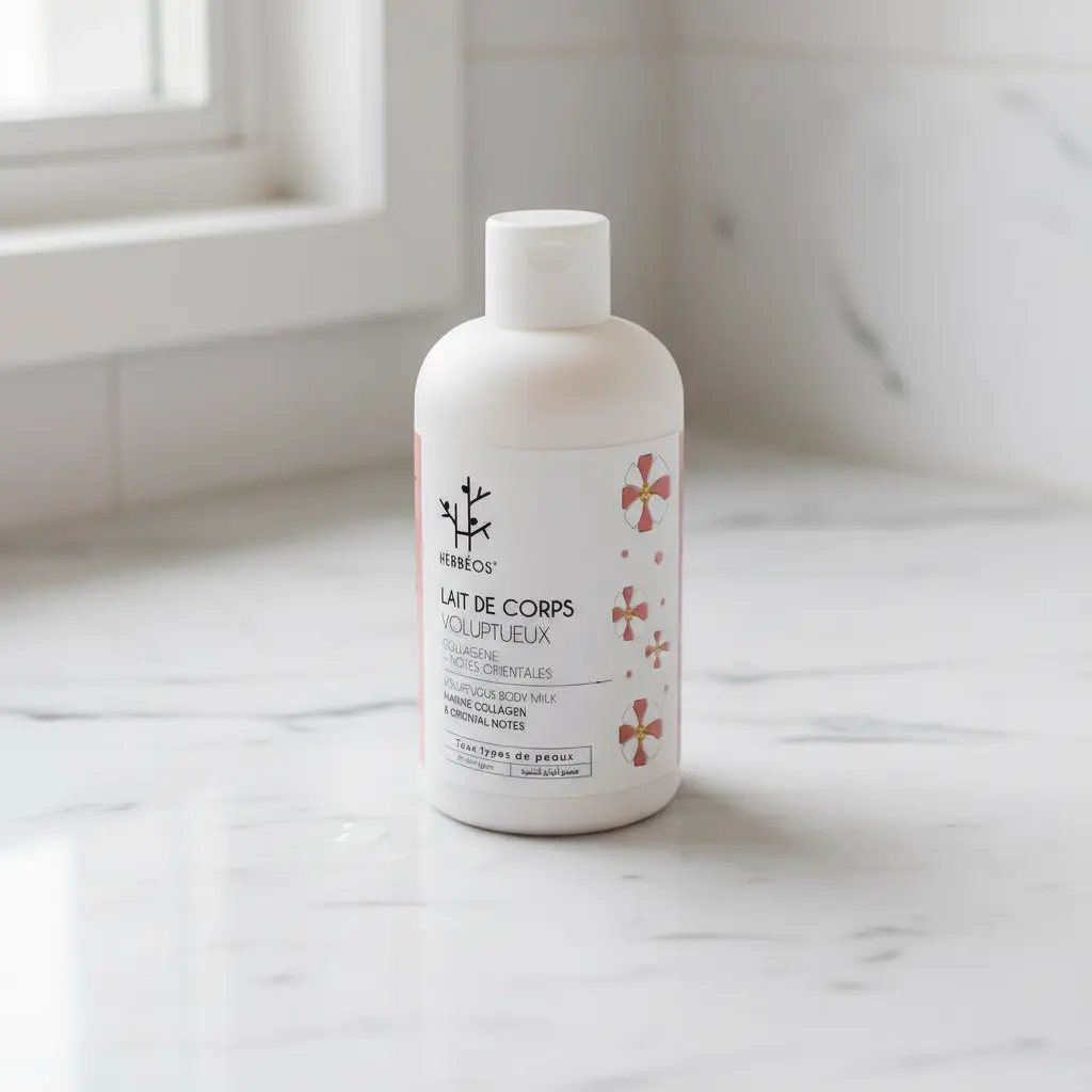 Herbeos Voluptuous Body Milk with Marine Collagen is a premium 250ml body care product designed to provide intense hydration for all skin types. This luxurious treatment features a rich, fast-absorbing formula that deeply nourishes the skin without leaving a greasy residue. Infused with marine collagen, it helps improve skin elasticity and texture while delivering essential moisture throughout the day.
