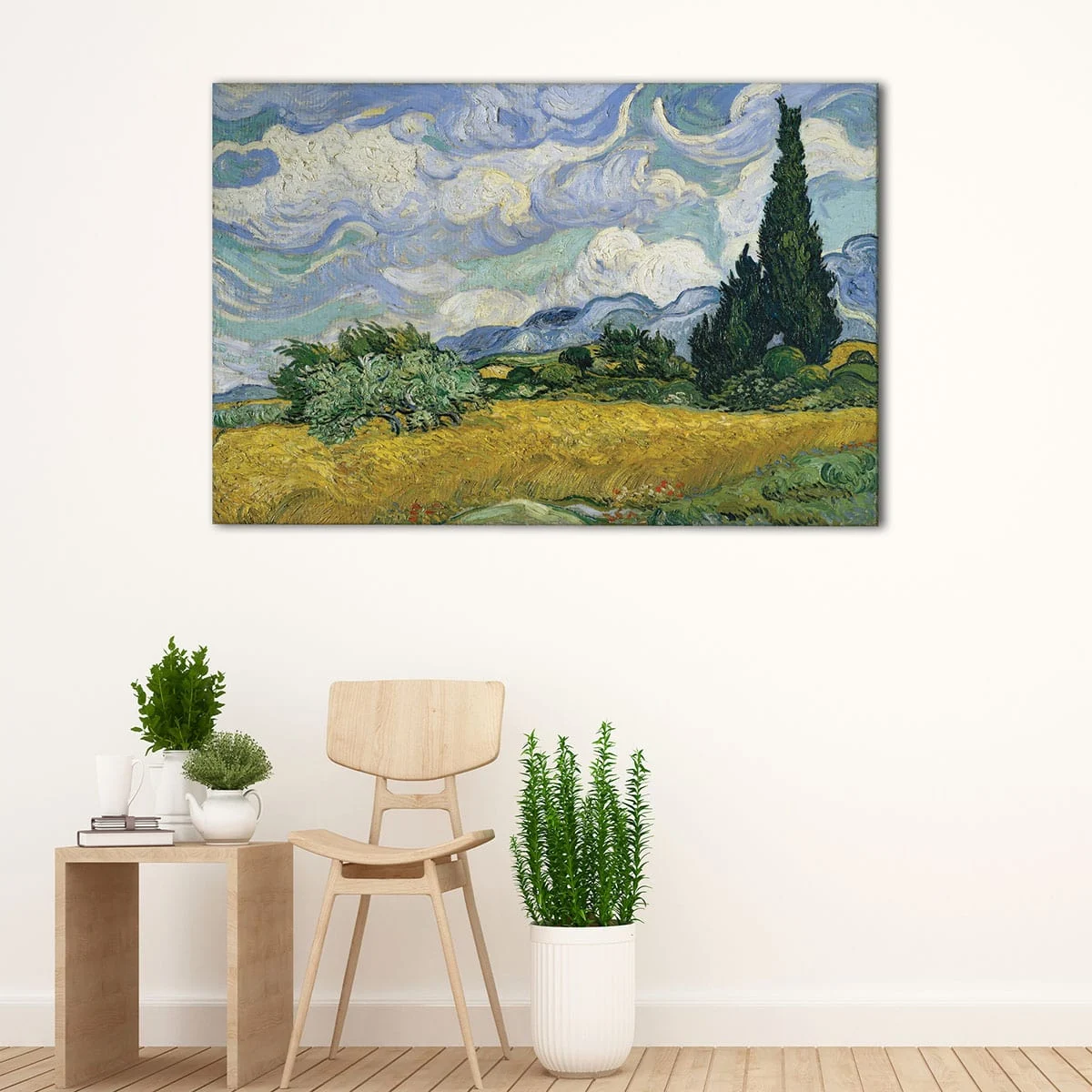 Bring the beauty of nature to your walls with our stunning Wheat Field With Cypresses canvas art. This high-quality print is carefully hand-stretched over 100% natural wood stretcher bars, ensuring a durable and long-lasting piece of art. Our expert craftsman combines premium poly-cotton canvas with pigment-archival inks to produce vibrant colors that will last for 100+ years.