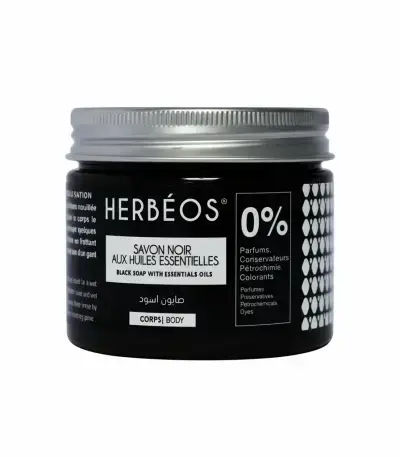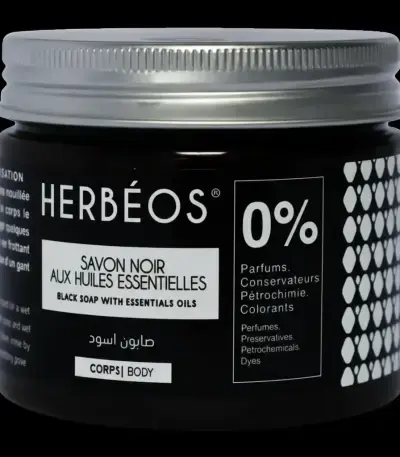 Herbeos Black Soap with Essential Oils is a 150ml natural body cleanser. This soap is free from perfumes, preservatives, petrochemicals, and dyes. It is designed for use on wet skin, providing a gentle exfoliation and deep clean. Enriched with essential oils, it nourishes and revitalizes the skin, leaving it feeling refreshed and smooth.